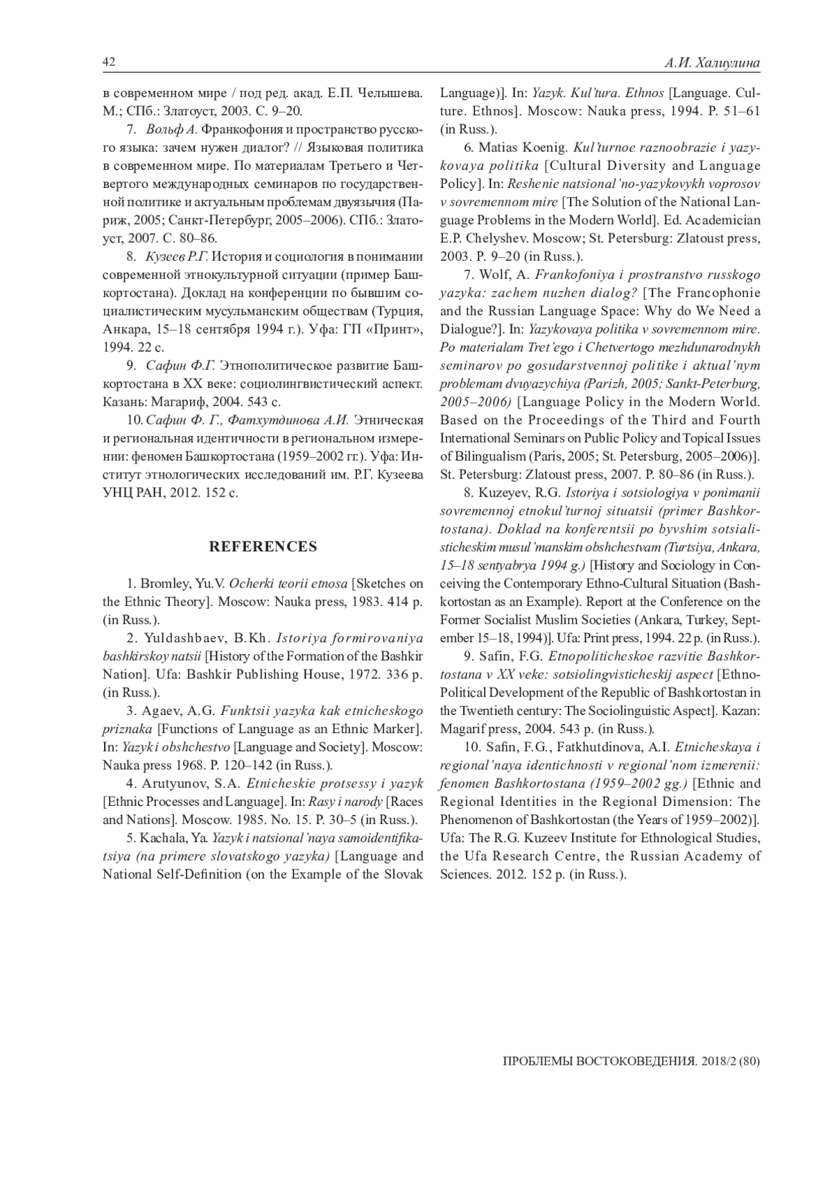 9. Сафин Ф.Г. Этнополитическое развитие Башкортостана в XX веке: социолингвистический аспект. Казань: Магариф, 2004. 543 c. EDN: QOFHTX