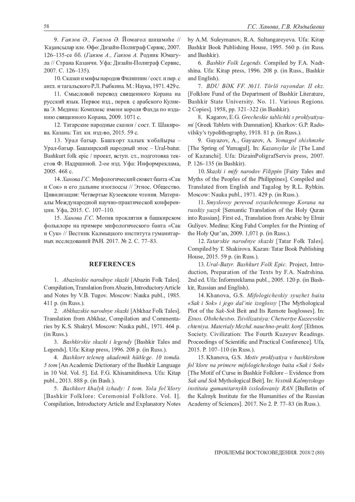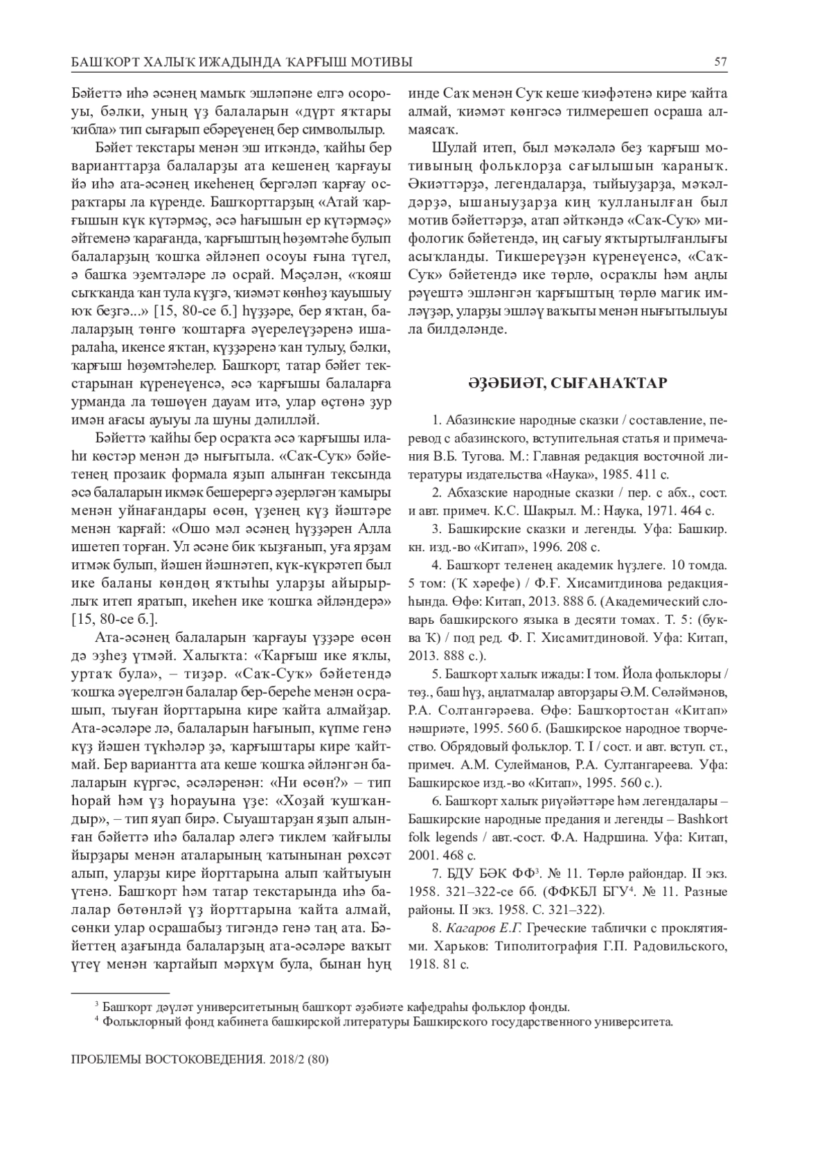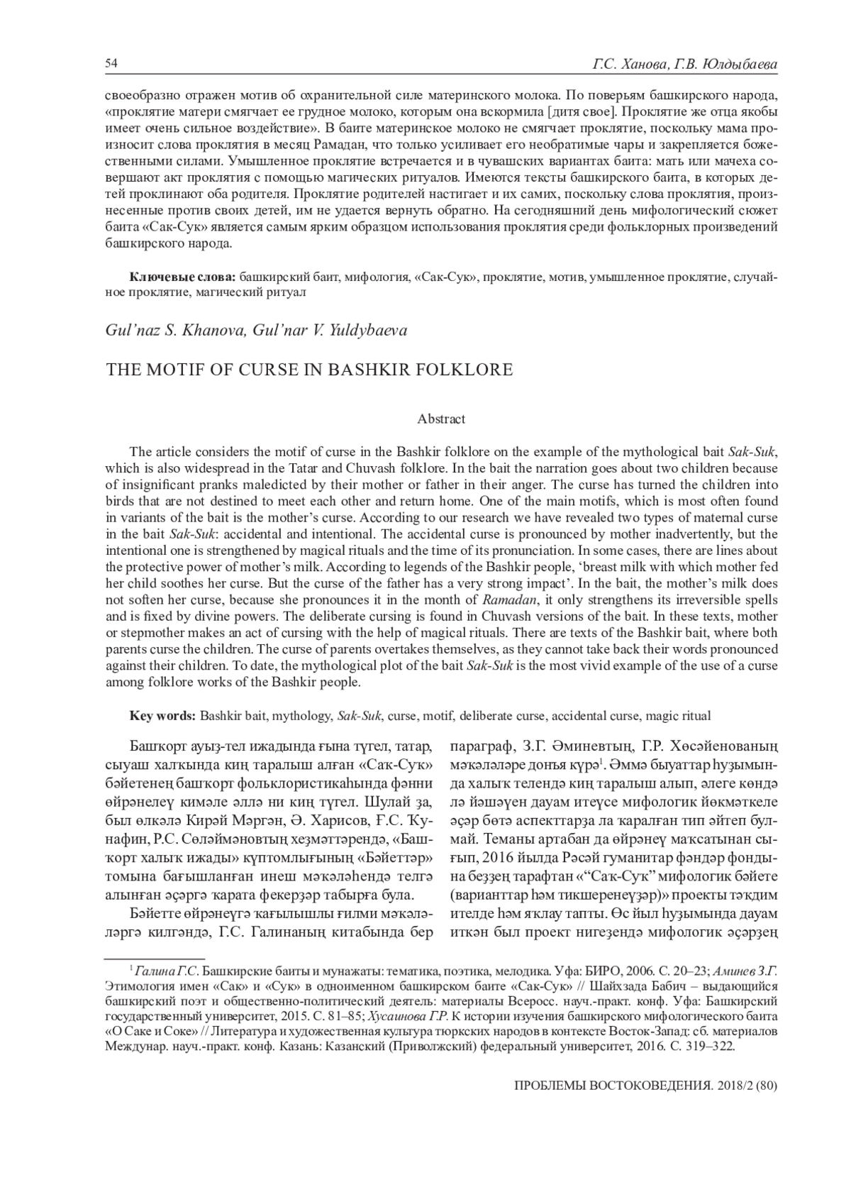 15. Ханова Г.С. Мотив проклятия в башкирском фольклоре на примере мифологического баита «Сак и Сук»//Вестник Калмыцкого института гуманитарных исследований РАН. 2017. № 2. С. 77-83. EDN: ZRCNNJ