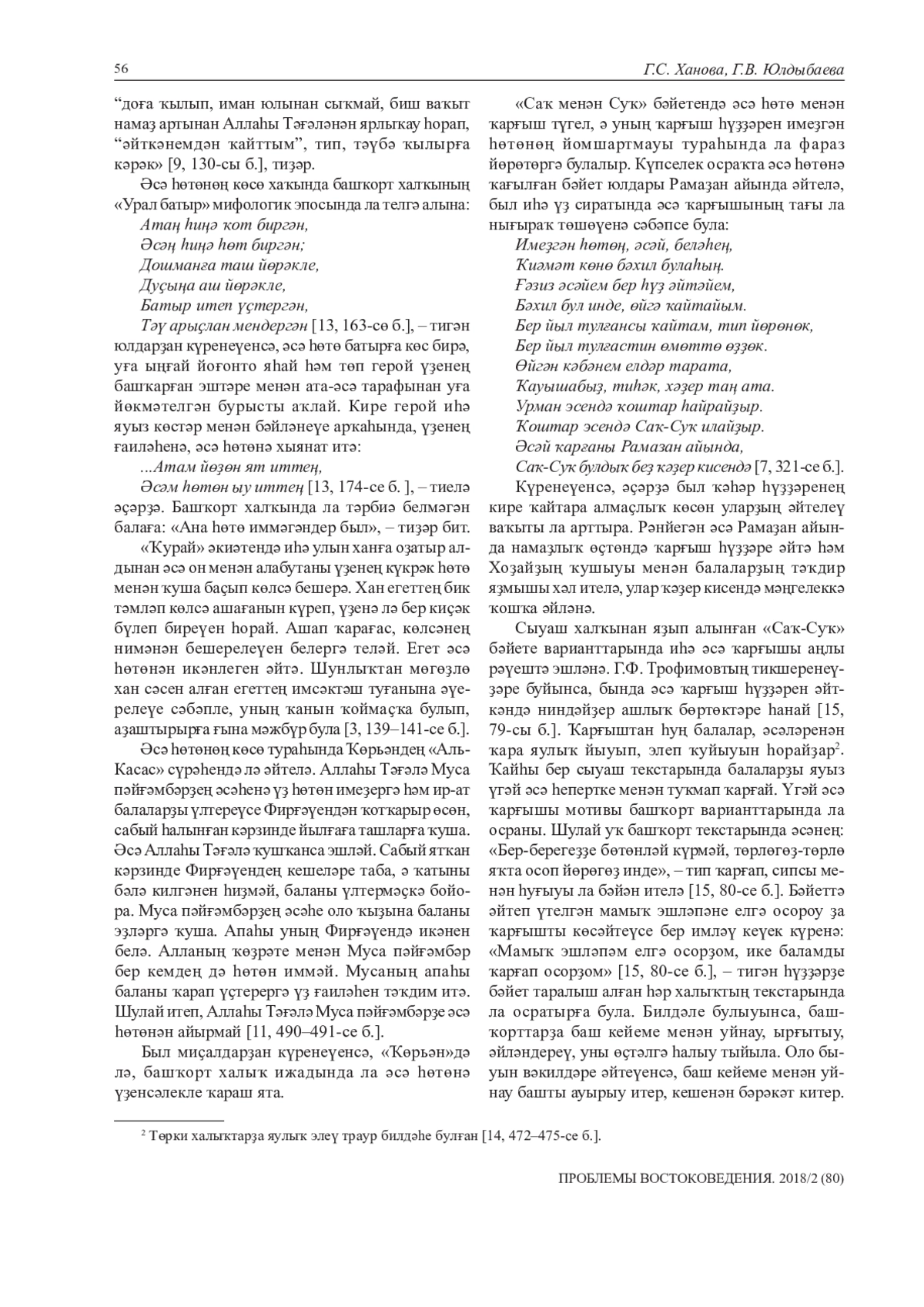 14. Ханова Г.С. Мифологический сюжет баита «Сак и Сок» и его дальние изоглоссы//Этнос. Общество. Цивилизация: Четвертые Кузеевские чтения. Материалы Международной научно-практической конференции. Уфа, 2015. С. 107-110. EDN: XGHZNZ
