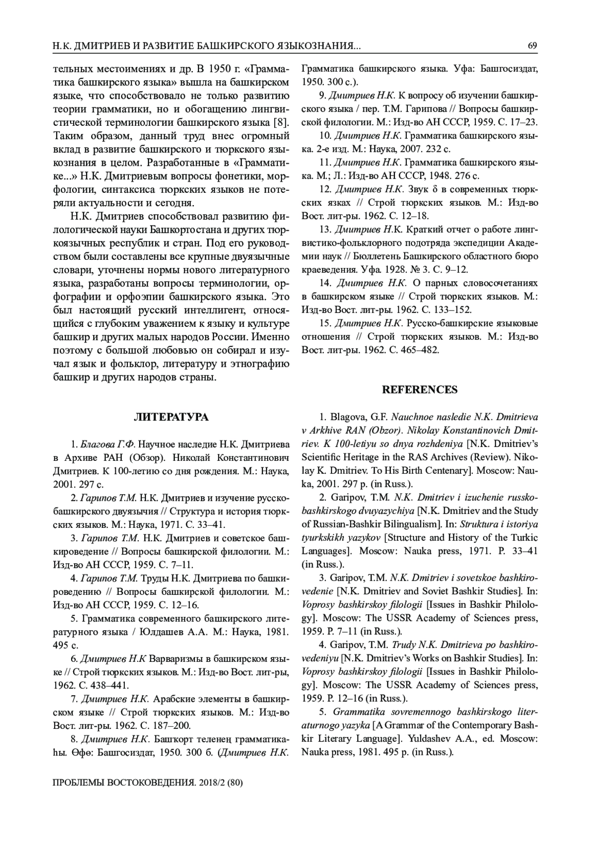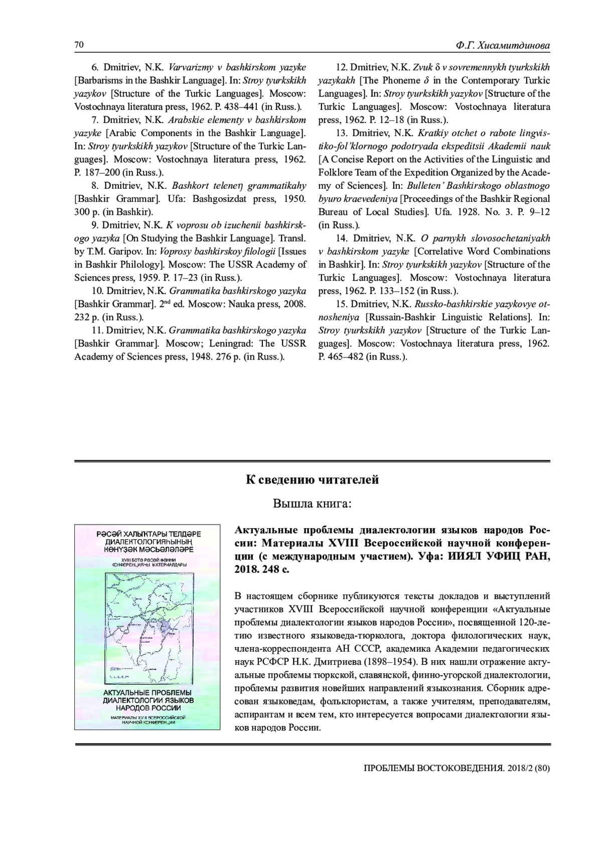 2. Гарипов Т.М. Н.К. Дмитриев и изучение русско-башкирского двуязычия // Структура и история тюркских языков. М.: Наука, 1971. С. 33-41.