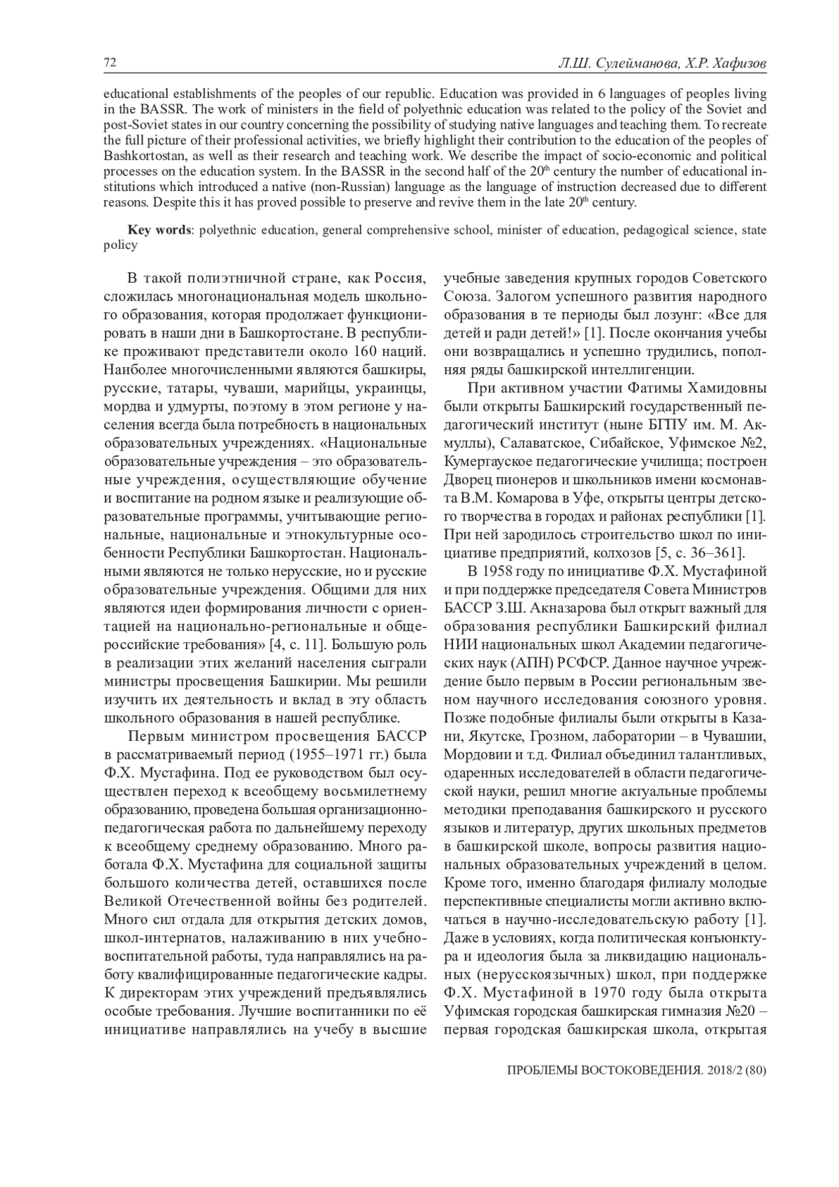 8. Сулейманова Л.Ш. История становления и развития национальных школ народов Башкортостана в XX в. Уфа: Нефтегазовое дело. 2011. 455 с. EDN: TMCAMJ