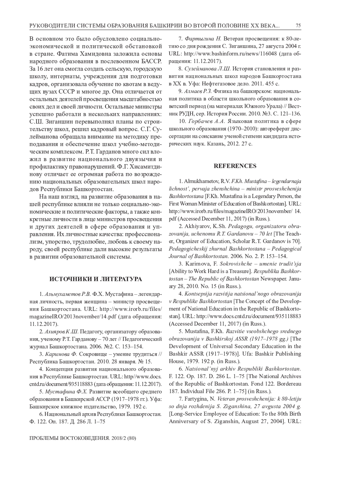 1. Альмухаметов Р.В. Ф.Х. Мустафина - легендарная личность, первая женщина - министр просвещения Башкортостана. URL: http://www.irorb.ru/files/magazineIRO/2013november/14.pdf (дата обращения: 11.12.2017).