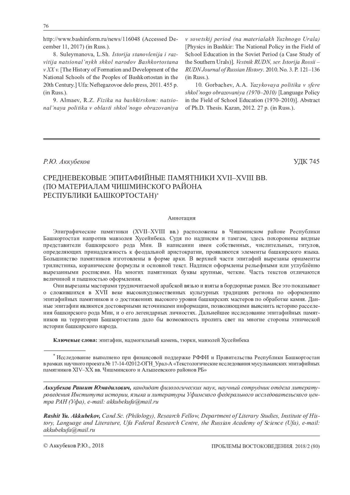9. Алмаев Р.З. Физика на башкирском: национальная политика в области школьного образования в советский период (на материалах Южного Урала) // Вестник РУДН, сер. История России. 2010. №3. С. 121-136. EDN: MTIBTP