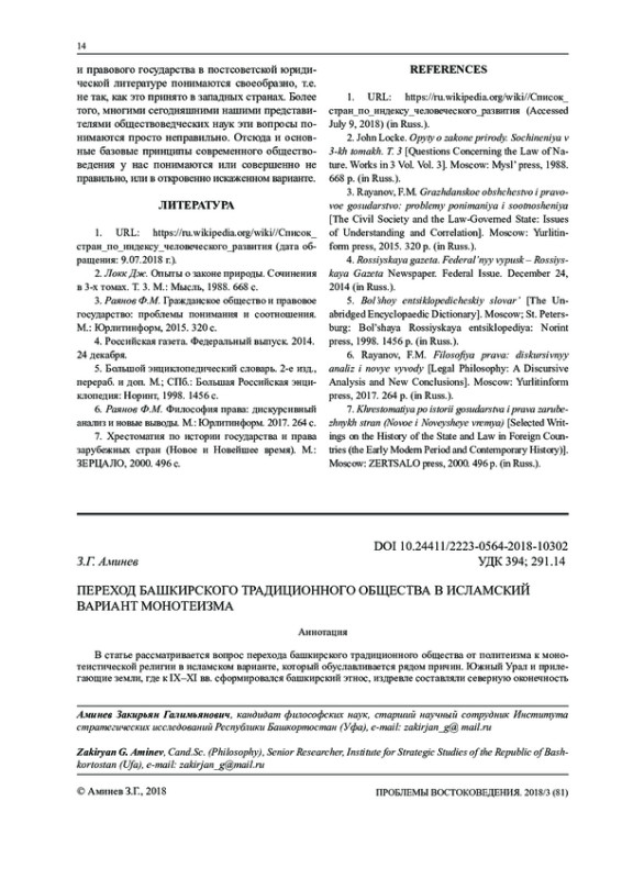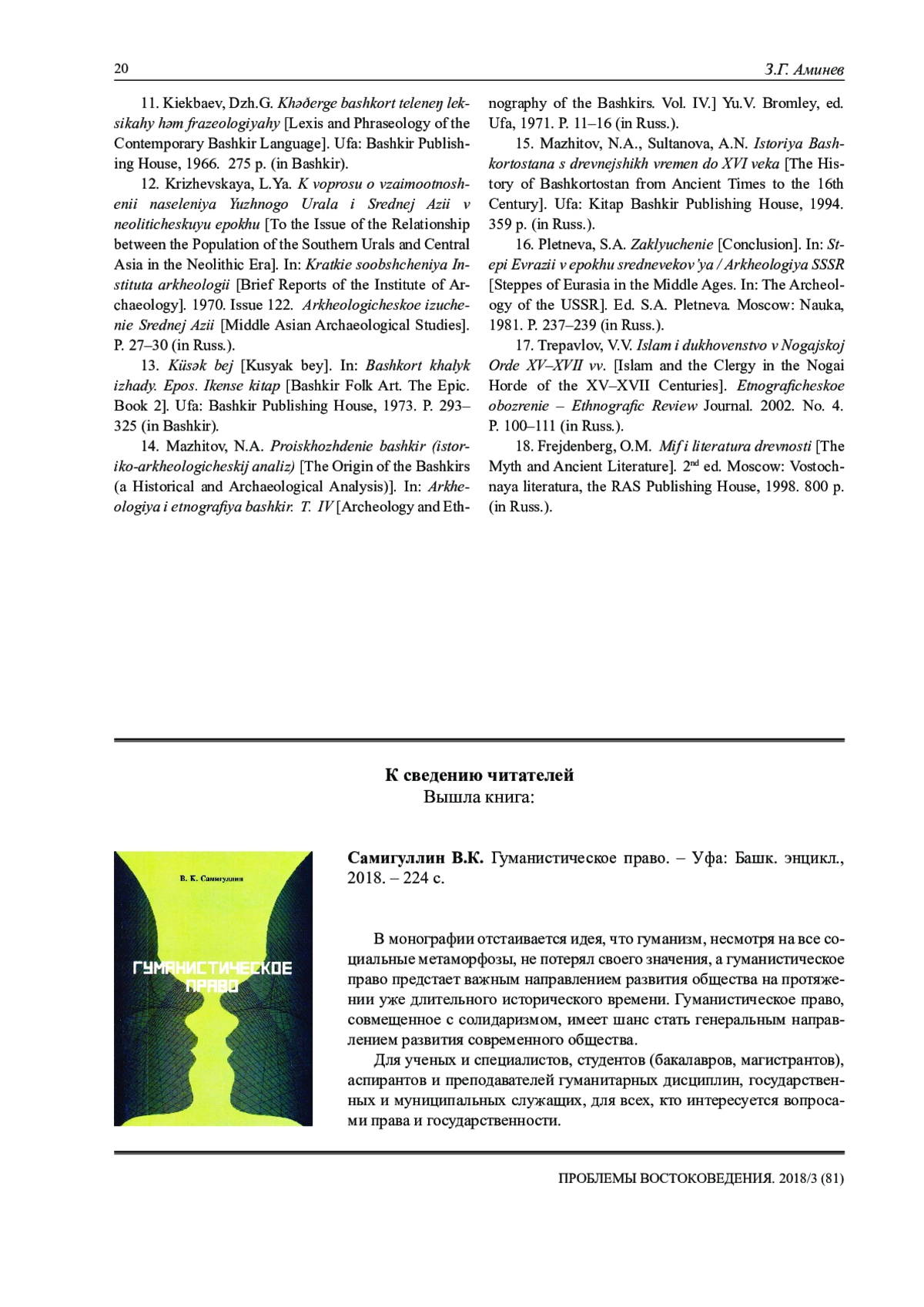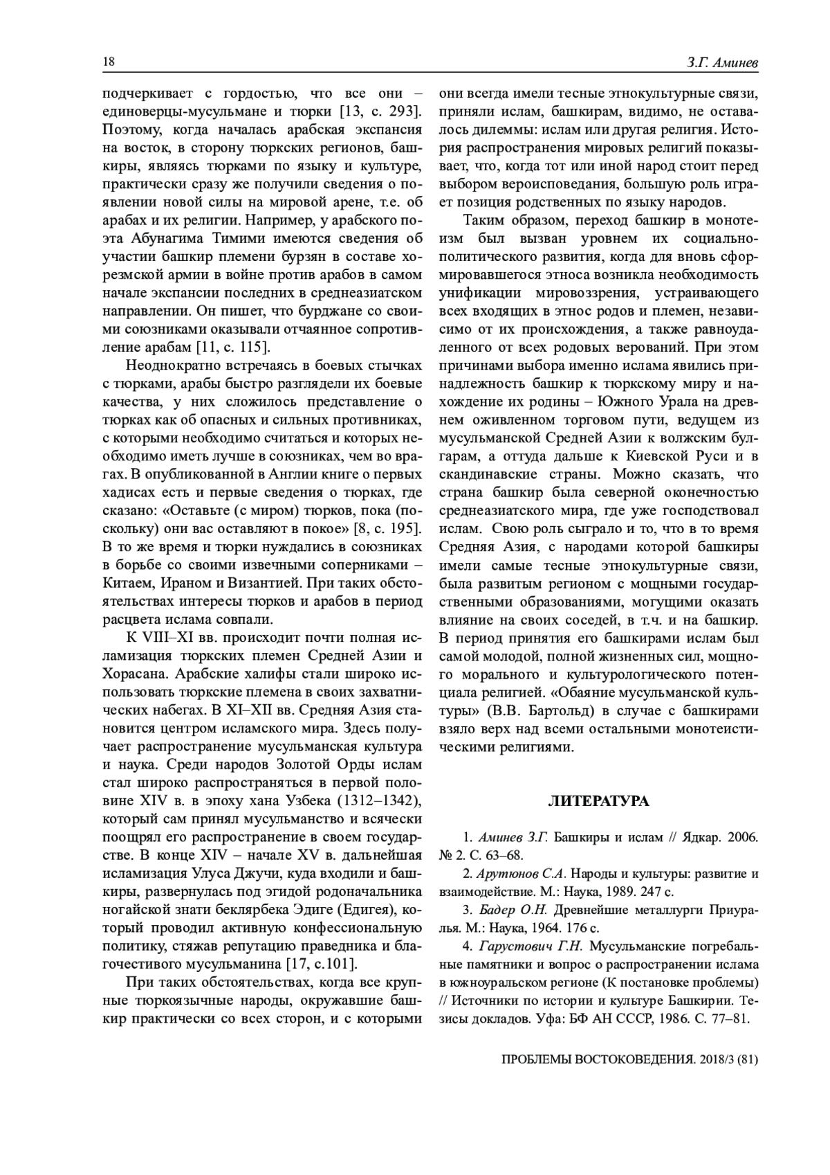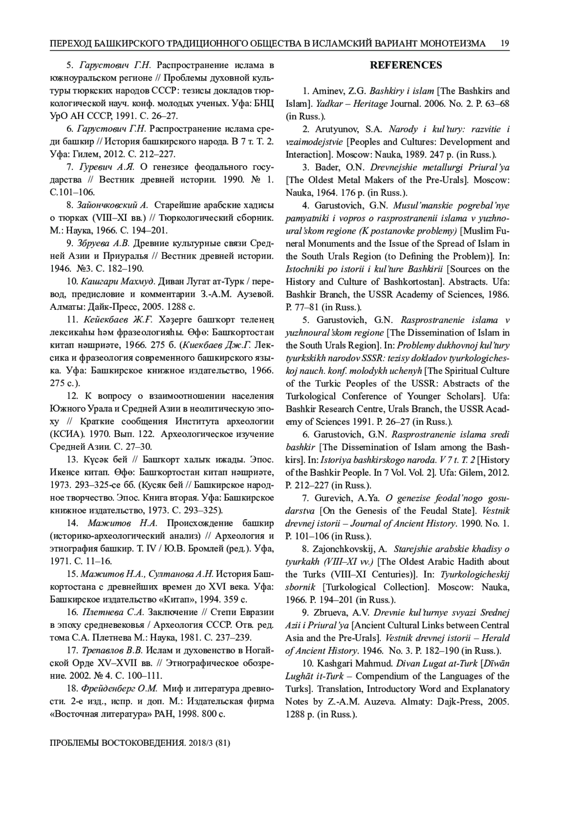 1. Аминев З.Г. Башкиры и ислам//Ядкар. 2006. № 2. С. 63-68.