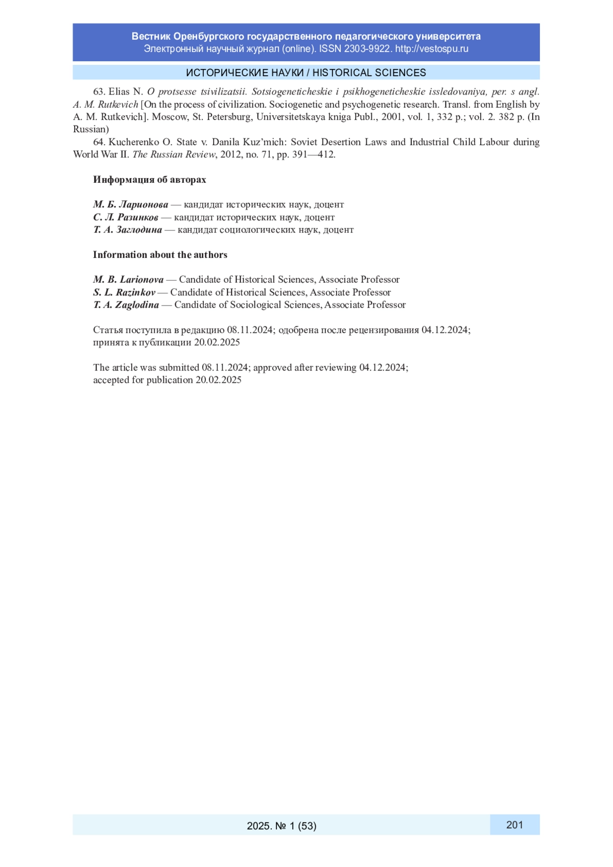 64. Kucherenko O. State v. Danila Kuz’mich: Soviet Desertion Laws and Industrial Child Labour during World War II // The Russian Review. 2012. N 71. P. 391-412.