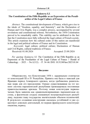 Коданева С.И. Конституция V Республики как выражение особенностей правовой культуры Франции // Вестник