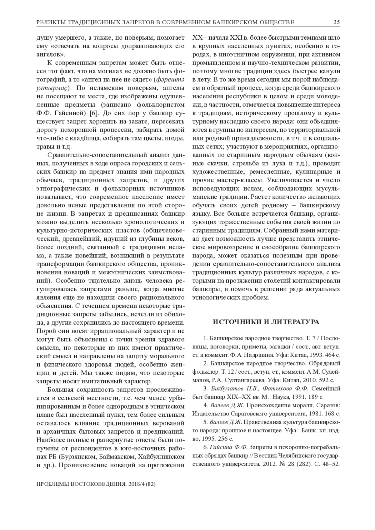 6. Гайсина Ф.Ф. Запреты в похоронно-погребальных обрядах башкир // Вестник Челябинского государственного университета. 2012. № 28 (282). С. 48-52. EDN: PUKWZH