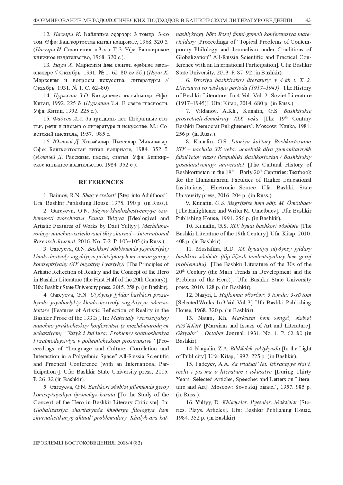 4. Гареева Г.Н. Утыҙынсы йылдар башҡорт прозаһында ысынбарлыҡты художестволы сағылдырыу үҙенсәлектәре (Особенности художественного отражения действительности в башкирской прозе тридцатых годов) // Материалы Всероссийской научно-практической конференции (с международным участием) «Язык и культура: Проблемы соотношения и взаимодействия в полиэтническом пространстве». Уфа: РИЦ БашГУ, 2015. С. 26-32.