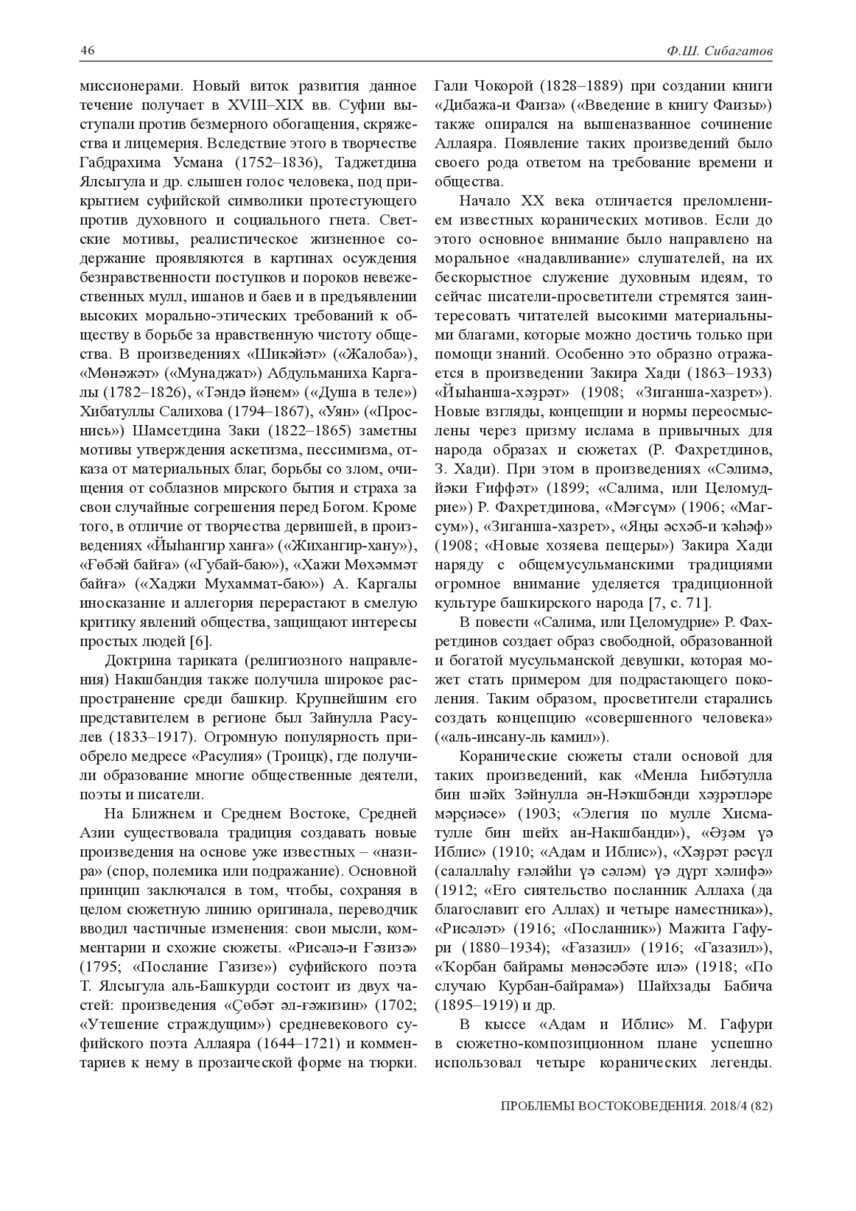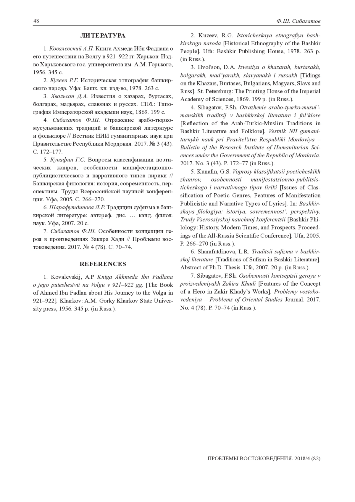 4. Сибагатов Ф.Ш. Отражение арабо-тюрко-мусульманских традиций в башкирской литературе и фольклоре // Вестник НИИ гуманитарных наук при Правительстве Республики Мордовия. 2017. № 3 (43). С. 172-177. EDN: YLCYRZ