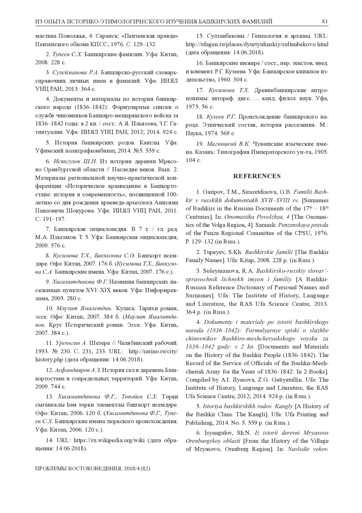 1. Гарипов Т.М., Сиразетдинова Г.Б. Фамилии башкир в русских документах XVII-XVIII вв. // Ономастика Поволжья, 4. Саранск: «Пензенская правда» Пензенского обкома КПСС, 1976. С. 129-132.