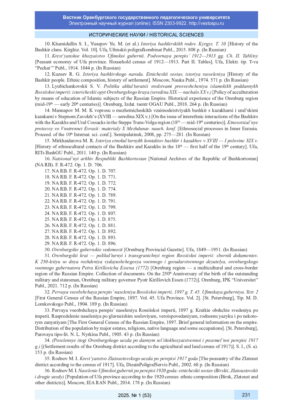 1. Абсалямова Ю. А. Оренбургские башкиры: историко-этнографическое исследование. Уфа: ИИЯЛ УФИЦ РАН, 2016. 184 с. EDN: WXNKNN