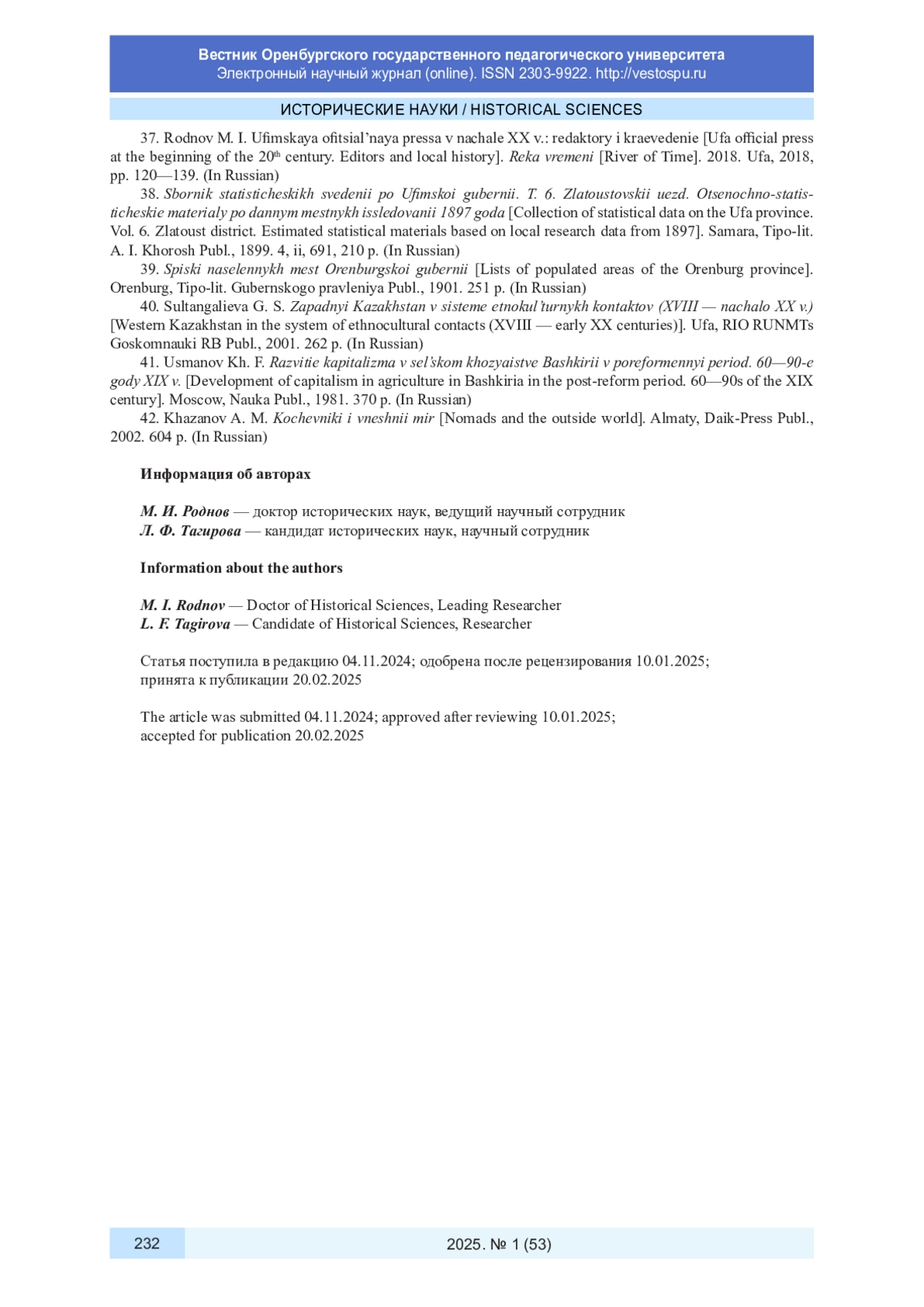 37. Роднов М. И. Уфимская официальная пресса в начале XX в.: редакторы и краеведение // Река времени. 2018. Уфа, 2018. С. 120-139.