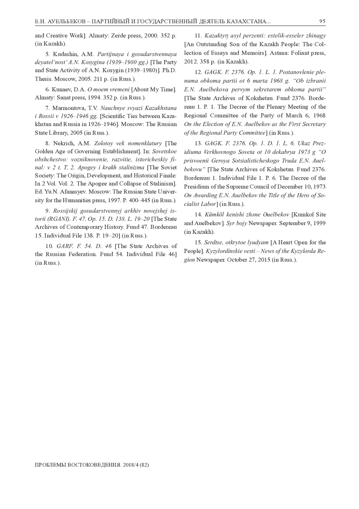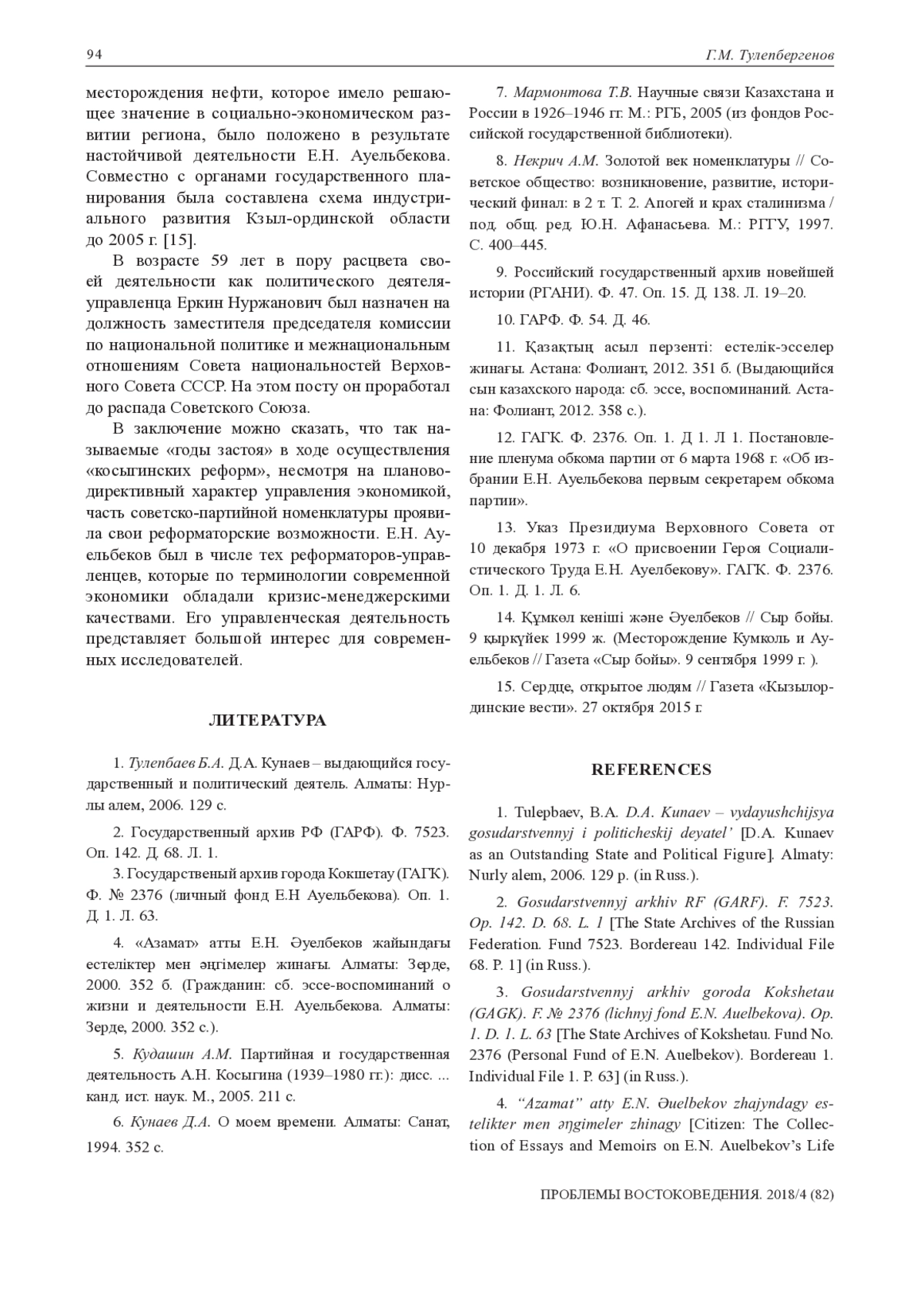 1. Тулепбаев Б.А. Д.А. Кунаев - выдающийся государственный и политический деятель. Алматы: Нурлы алем, 2006. 129 с.