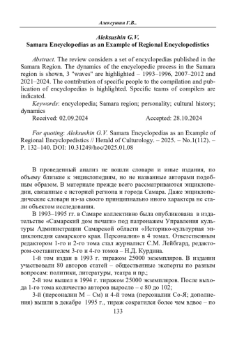 10. *Jenciklopedija Samarskoj oblasti*. T. 2. Г–И [Encyclopedia of the Samara region. T. 2. G–I]. Samara: ООО «SamLjuksPrint», 2010. 380 p. (In Russ.)