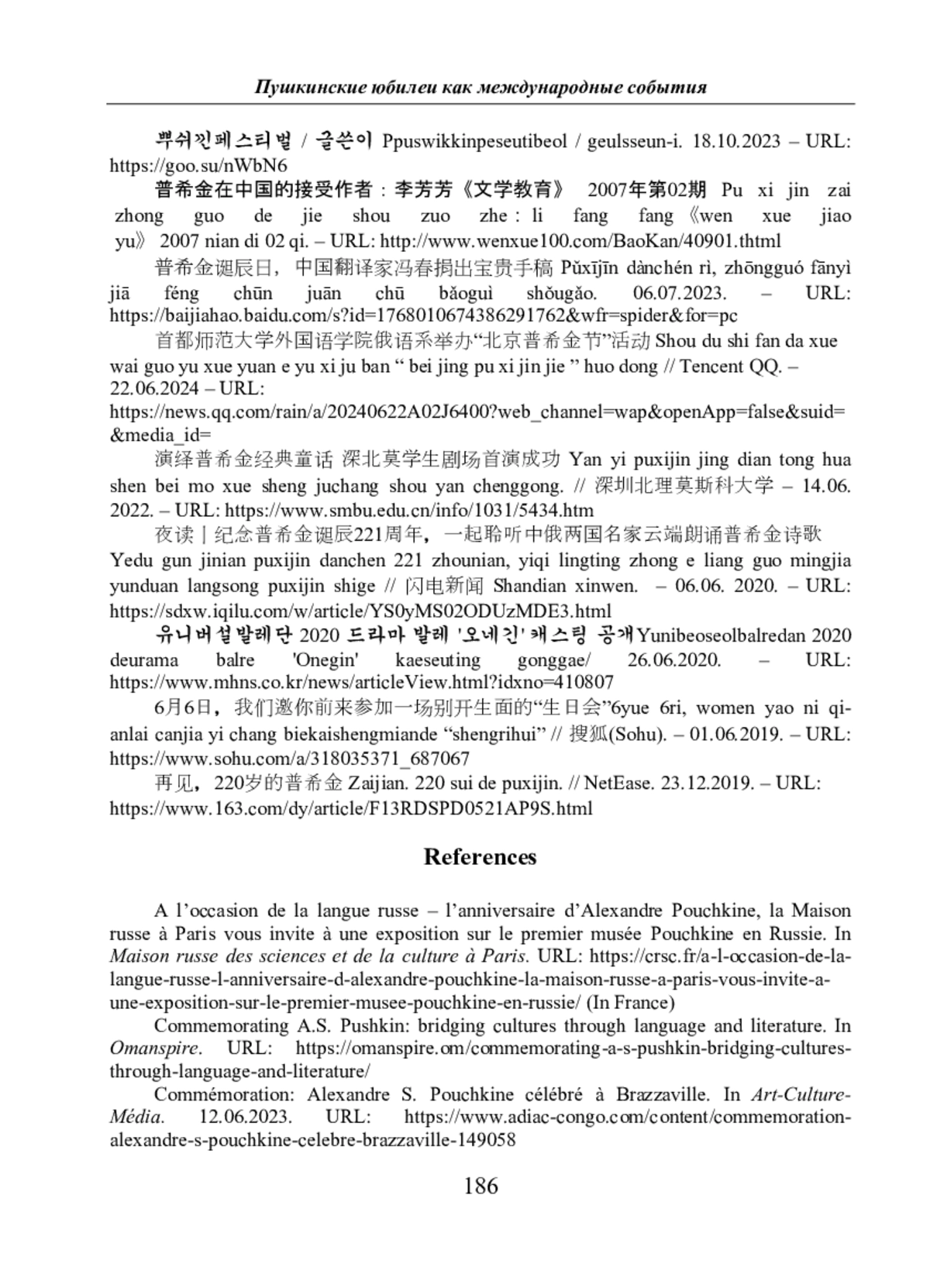 21. 首都师范大学外国语学院俄语系举办“北京普希金节“活动 Shou du shi fan da xue wai guo yu xue yuan e yu xi ju ban “ bei jing pu xi jin jie “ huo dong // Tencent QQ. - 22.06.2024 - URL: https://news.qq.com/rain/a/20240622A02J6400?web_channel=wap&openApp=false&suid=&media_id=.