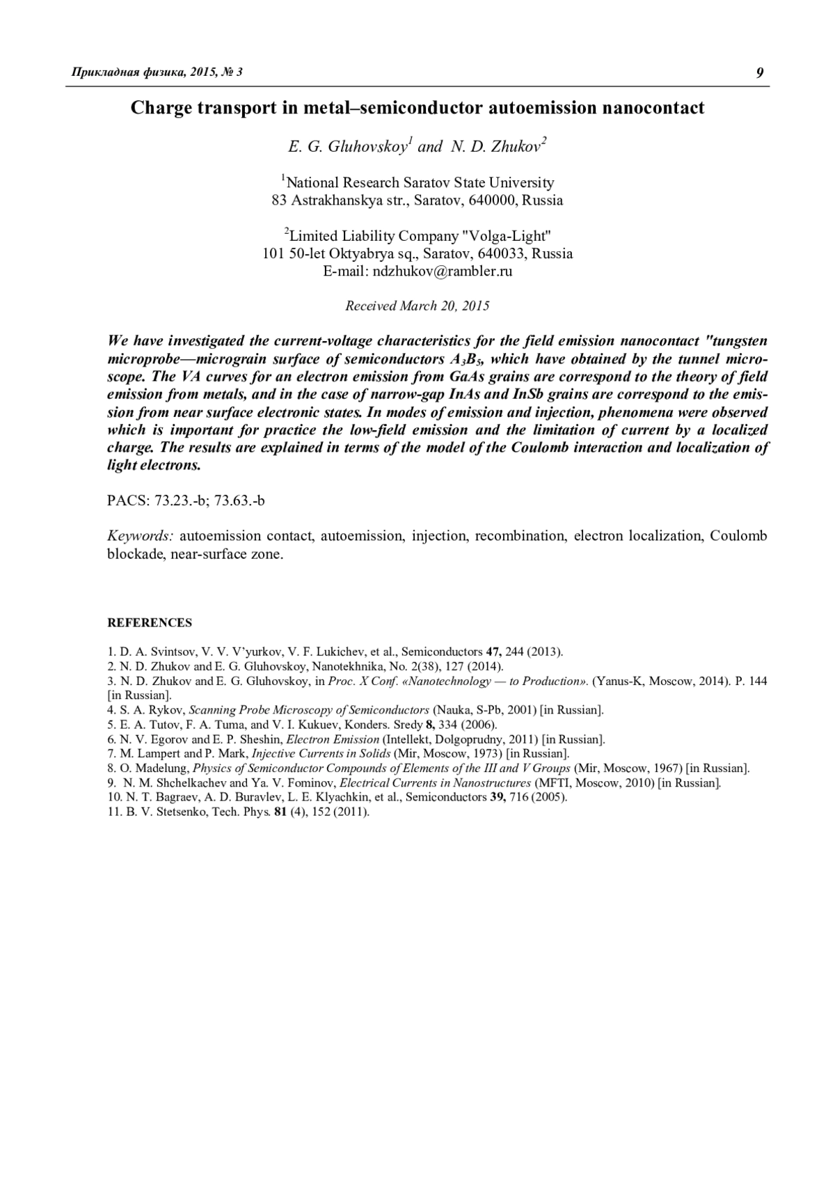 E. G. Gluhovskoy and N. D. Zhukov Charge transport in metal–semiconductor autoemission nanocontact 5