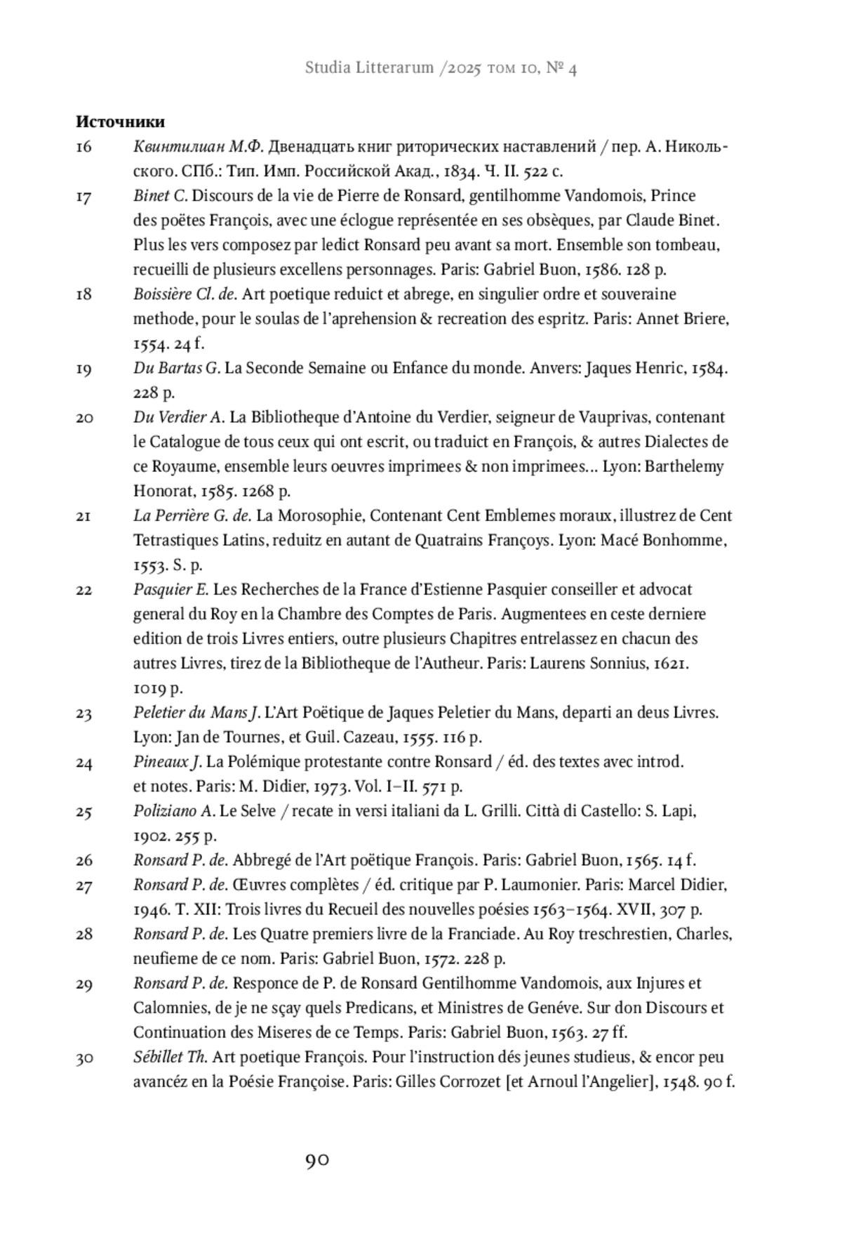 1. Виппер Ю.Б. Поэзия Плеяды: Становление литературной школы. М.: Наука, 1976. 432 с.