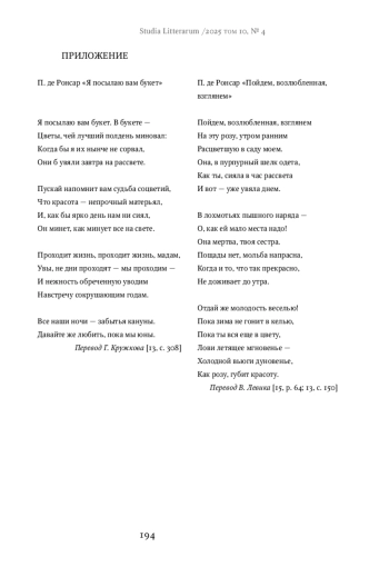 19. Ронсар П. Кассандра // Французская поэтическая антология. XVI век. Париж: Гарнье Фламмарион, 1965. СОВЕТ 289–290.