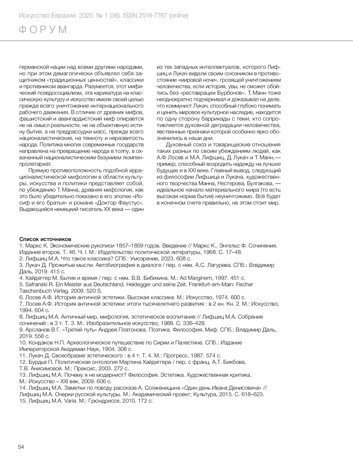 8. Lifshits, M.A. (1988) ‘The ancient world, mythology, aesthetic education’, in Lifshits, M.A. Collected Works, vol. 3. Moscow: Izobrazitelnoye iskusstvo, pp. 336–428. (In Russ.)