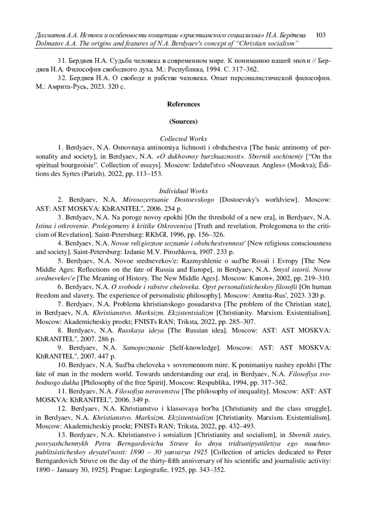 7. Малинкин А.Н. Н.А. Бердяев: штрихи к портрету социального философа // Социологические исследования. 2024. № 3. С. 15-27.