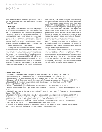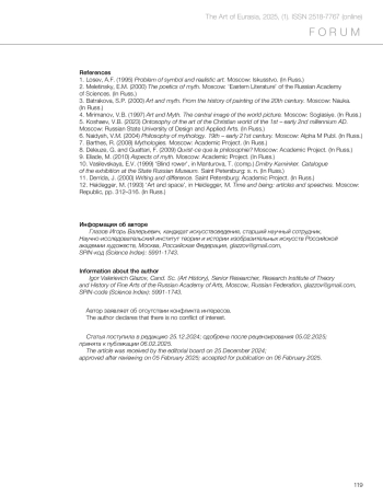 3. Batrakova, S.P. (2000) Art and myth. From the history of painting of the 20th century. Moscow: Nauka. (In Russ.)