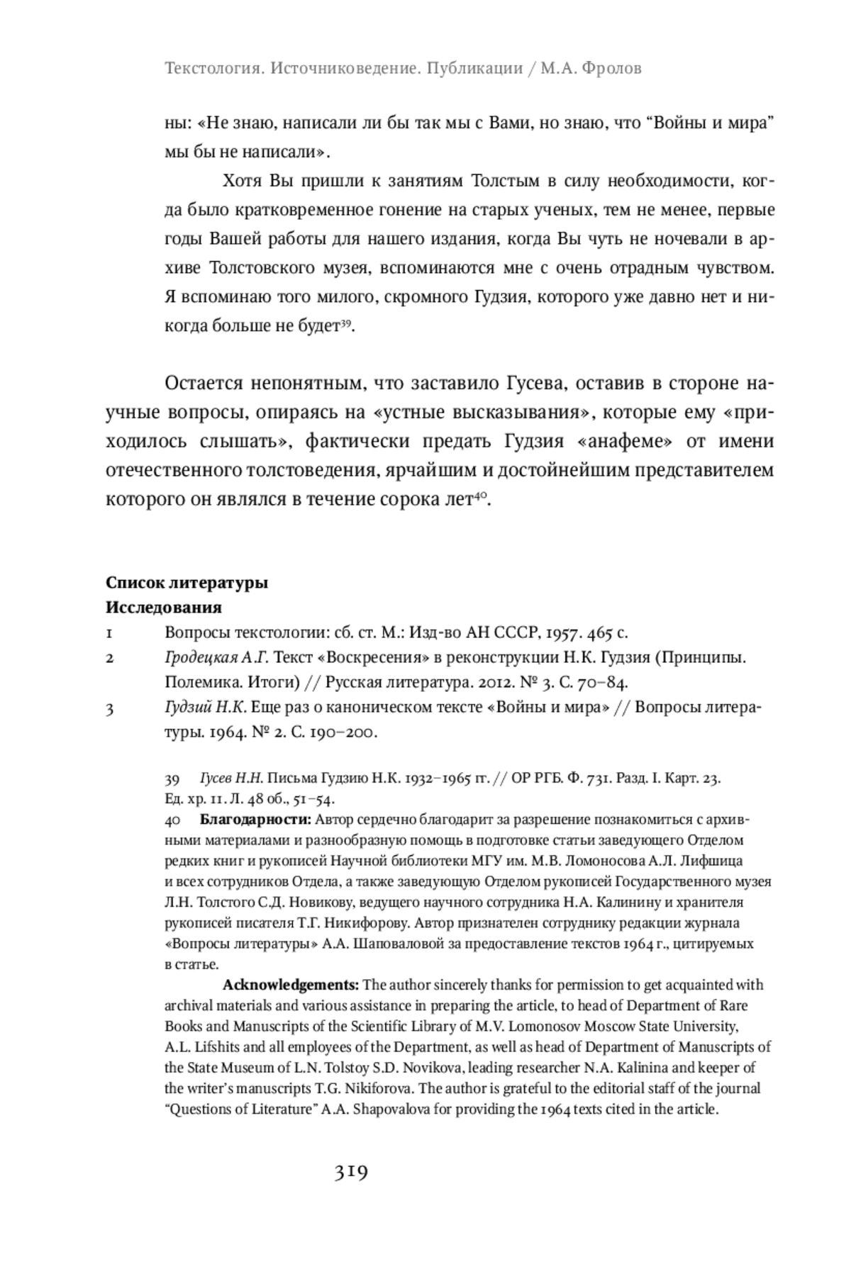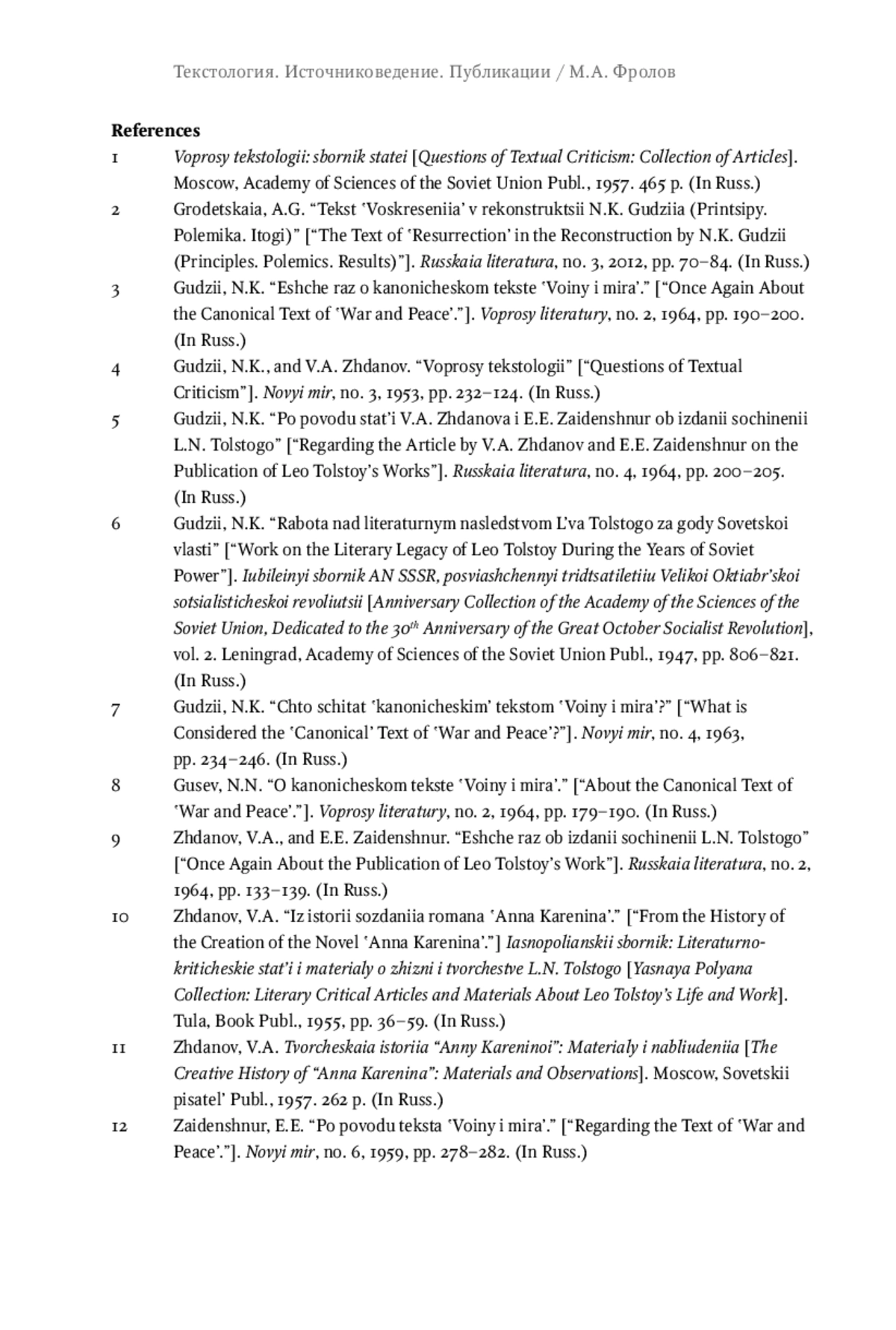 3. Гудзий Н.К. Еще раз о каноническом тексте “Войны и мира” // Вопросы литературы. 1964. № 2. С. 190-200.