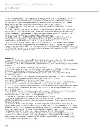 5. Лю Ц. Синтез изобразительного искусства и литературы в китайских книгах ляньхуаньхуа: дис. … канд. искусствоведения. Санкт-Петербург, 2022. 246 с.