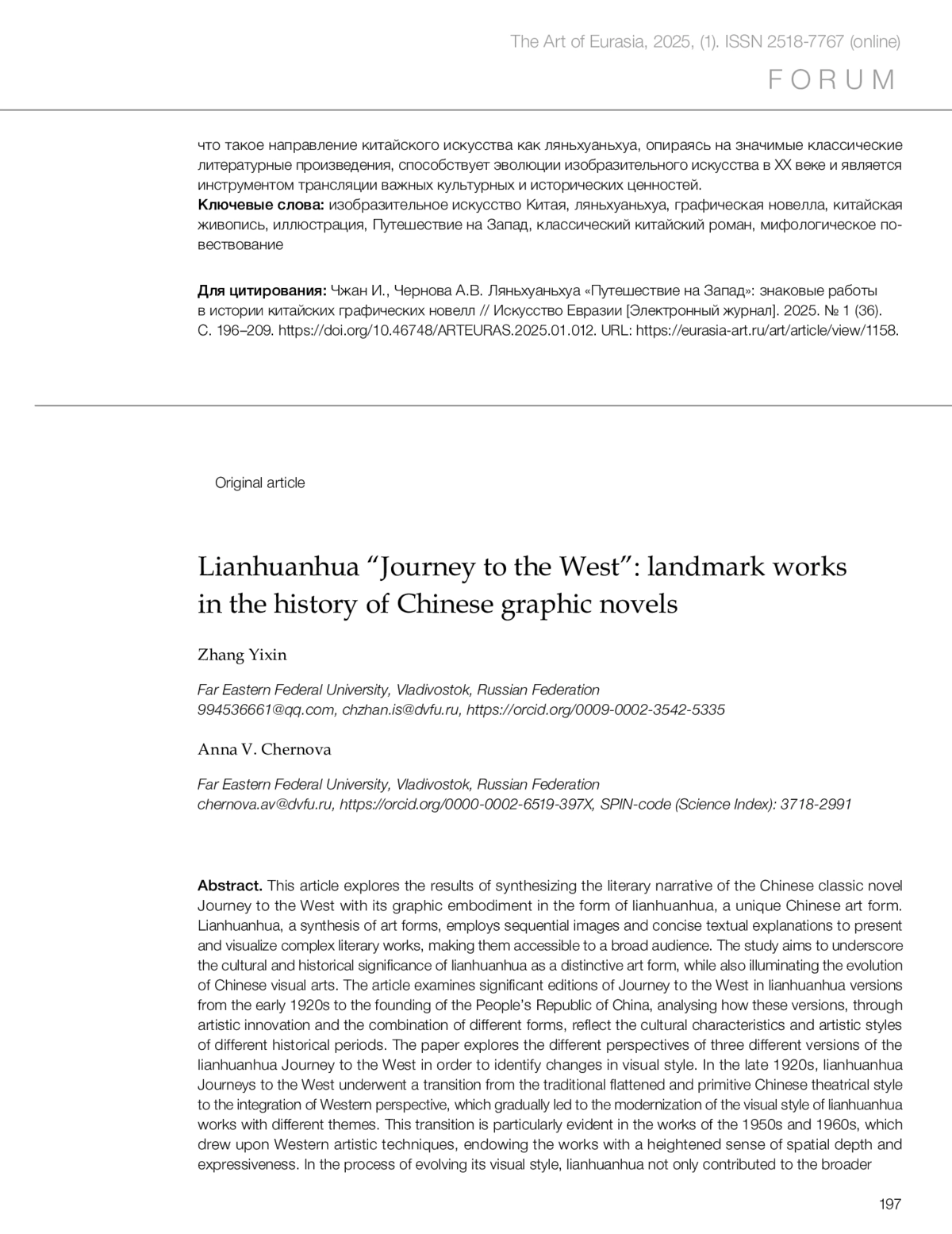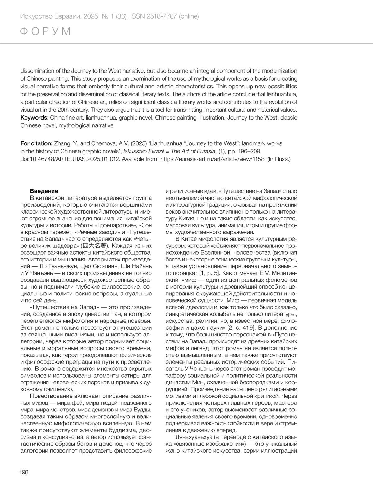 Чжан И., Чернова А.В. Ляньхуаньхуа «Путешествие на Запад»: знаковые работы в истории китайских графических новелл // Искусство Евразии [Электронный журнал]. 2025. No 1 (36).