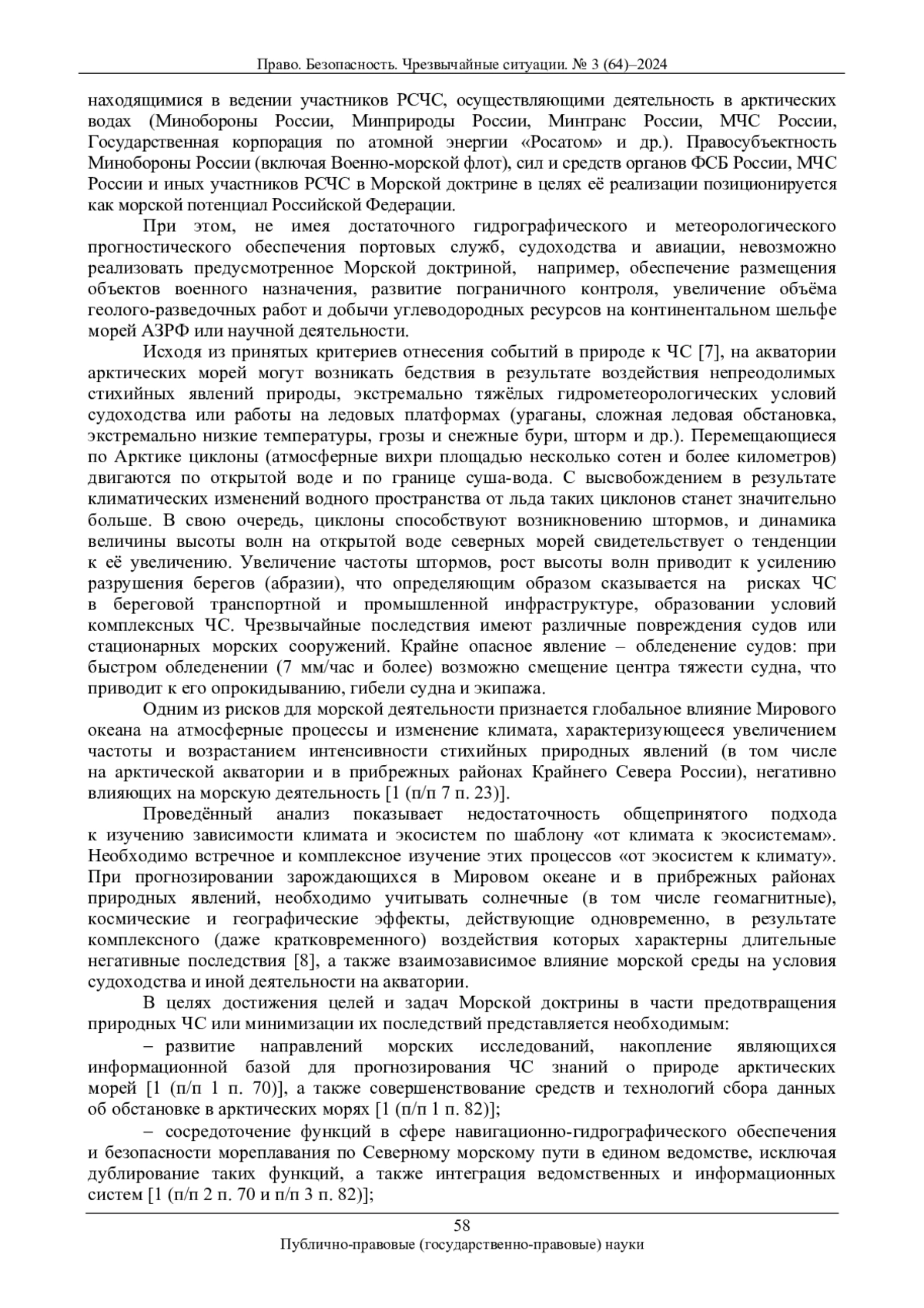 9. Снятков А.А. Морская доктрина Российской Федерации как фундаментальная основа формирования арктической политики в ближайшей перспективе // Chronos. 2022. Т. 7. № 7 (69). С. 60. DOI: 10.52013/2658-7556-69-7-17 EDN: MLUZSW