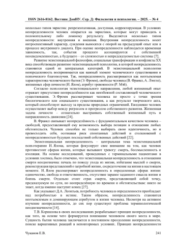 14. Леонтьев Д.А. Вызов неопределенности как центральная проблема психологии личности / Д.А. Леонтьев // Психологические исследования. - 2015. - Т. 8, № 40. - С. 2. EDN: TWHMBD