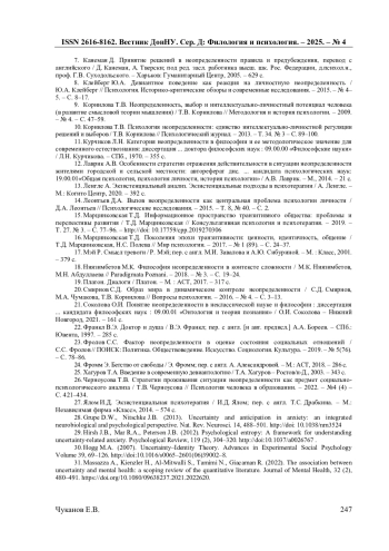 29. Hirsh J.B., Mar R.A., Peterson J.B. (2012). Psychological entropy: A framework for understanding uncertainty-related anxiety. Psychological Review, 119 (2), 304-320. http://. DOI: 10.1037/a0026767 EDN: RPNUKJ
