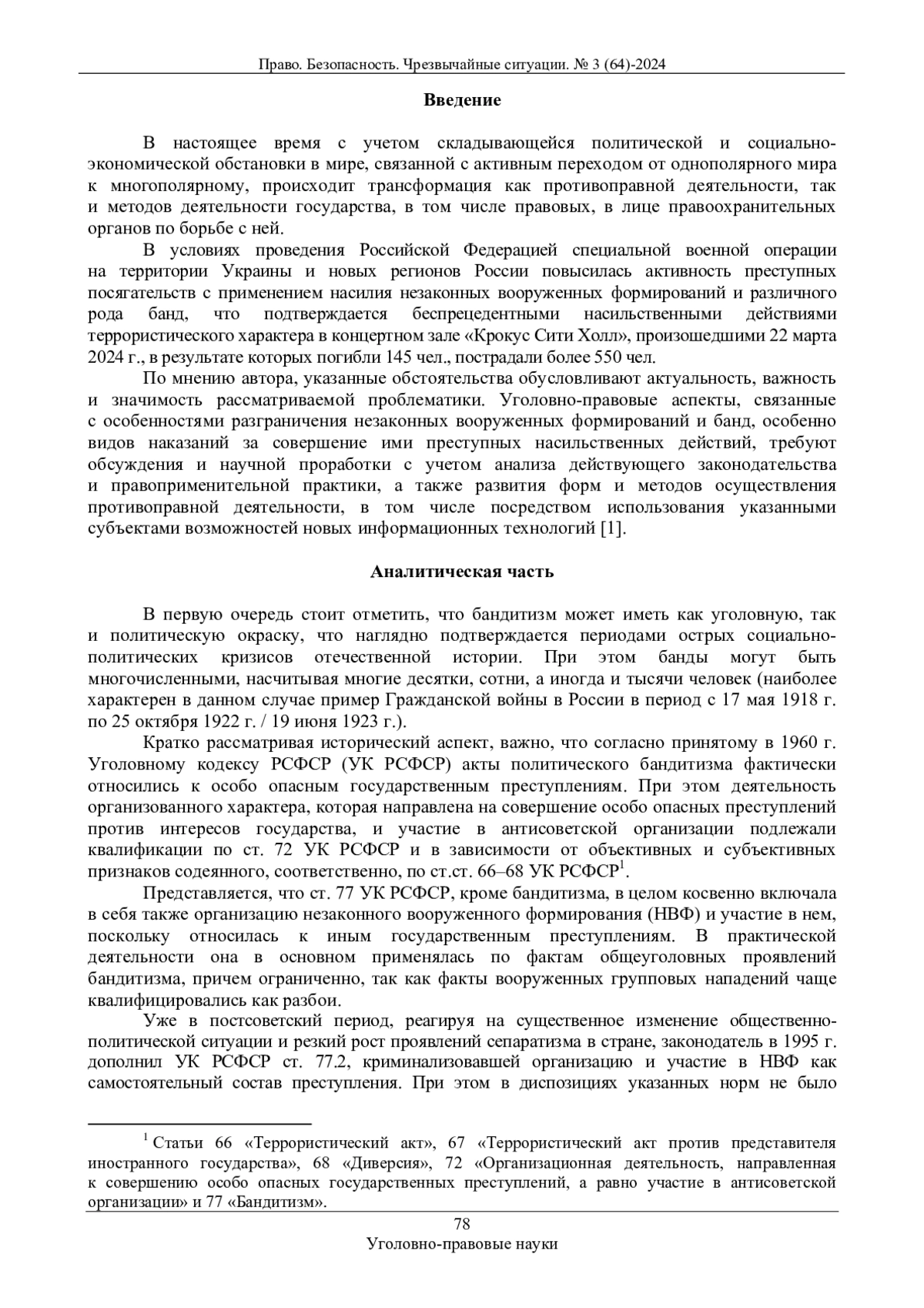 В условиях проведения Российской Федерацией специальной военной операции на территории Украины и новых регионов России повысилась активность преступных посягательств с применением насилия незаконных вооруженных формирований и различного рода банд, что подтверждается беспрецедентными насильственными действиями террористического характера в концертном зале «Крокус Сити Холл», произошедшими 22 марта 2024 г., в результате которых погибли 145 чел., пострадали более 550 чел.
