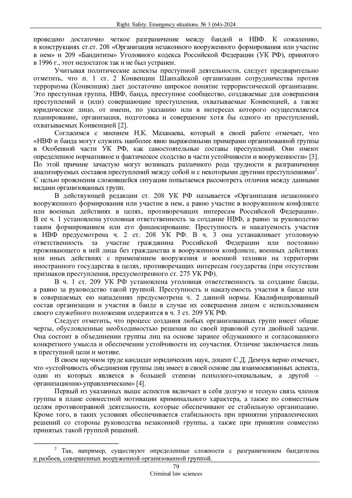 3. Мазанаев Н.К. Банда, незаконные вооруженные формирования - проблемы разграничения и квалификации преступлений // Образование и право. 2021. № 13. С. 358-361. EDN: ISQAAT