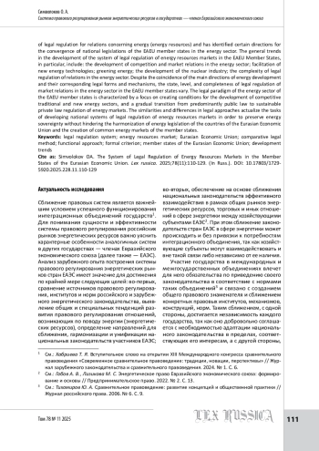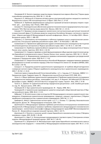 1. Габов А. В., Лизикова М. С. Энергетическое право Евразийского экономического союза: формирование и основы // Предпринимательское право. 2022. № 2. С. 13-24.