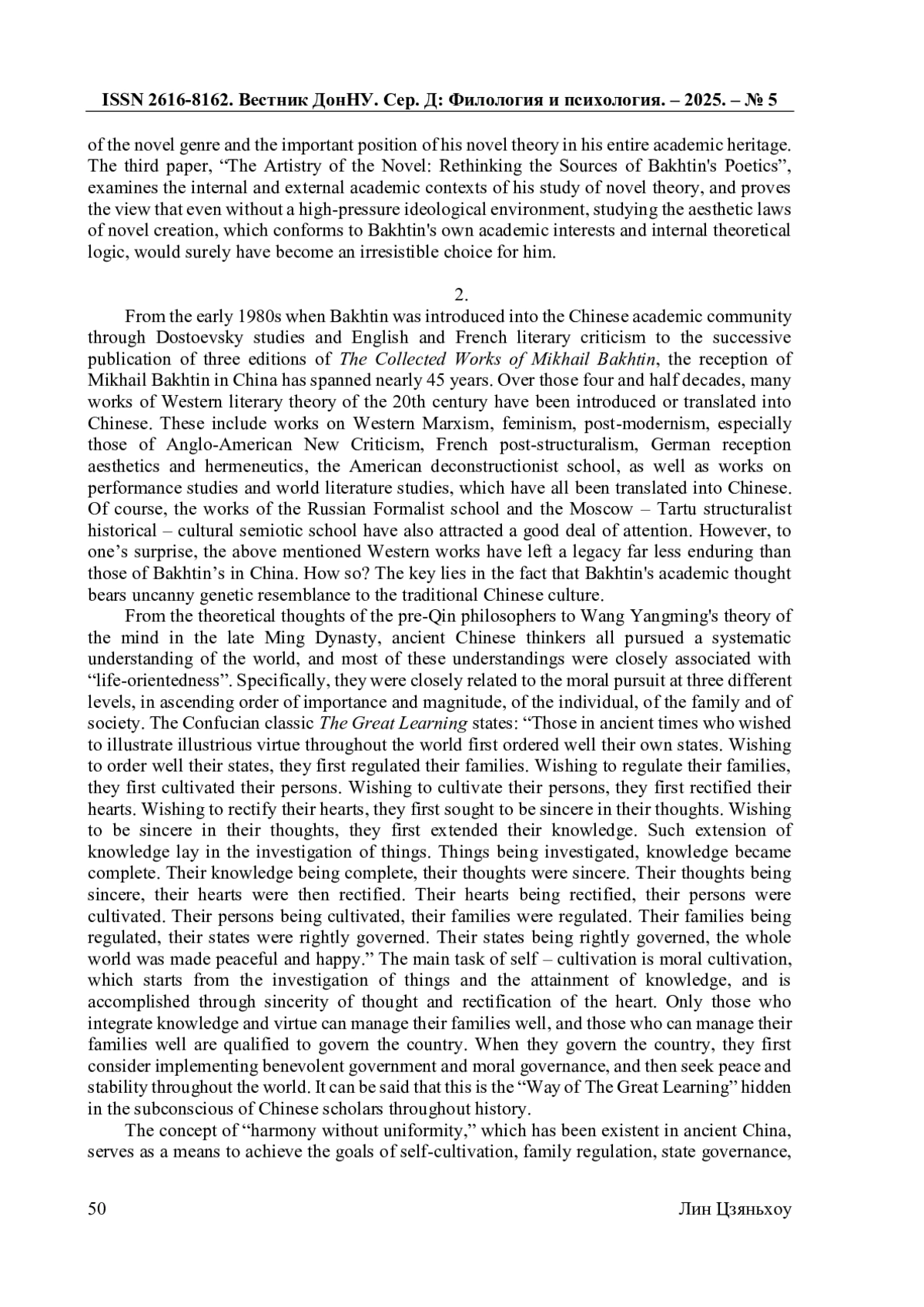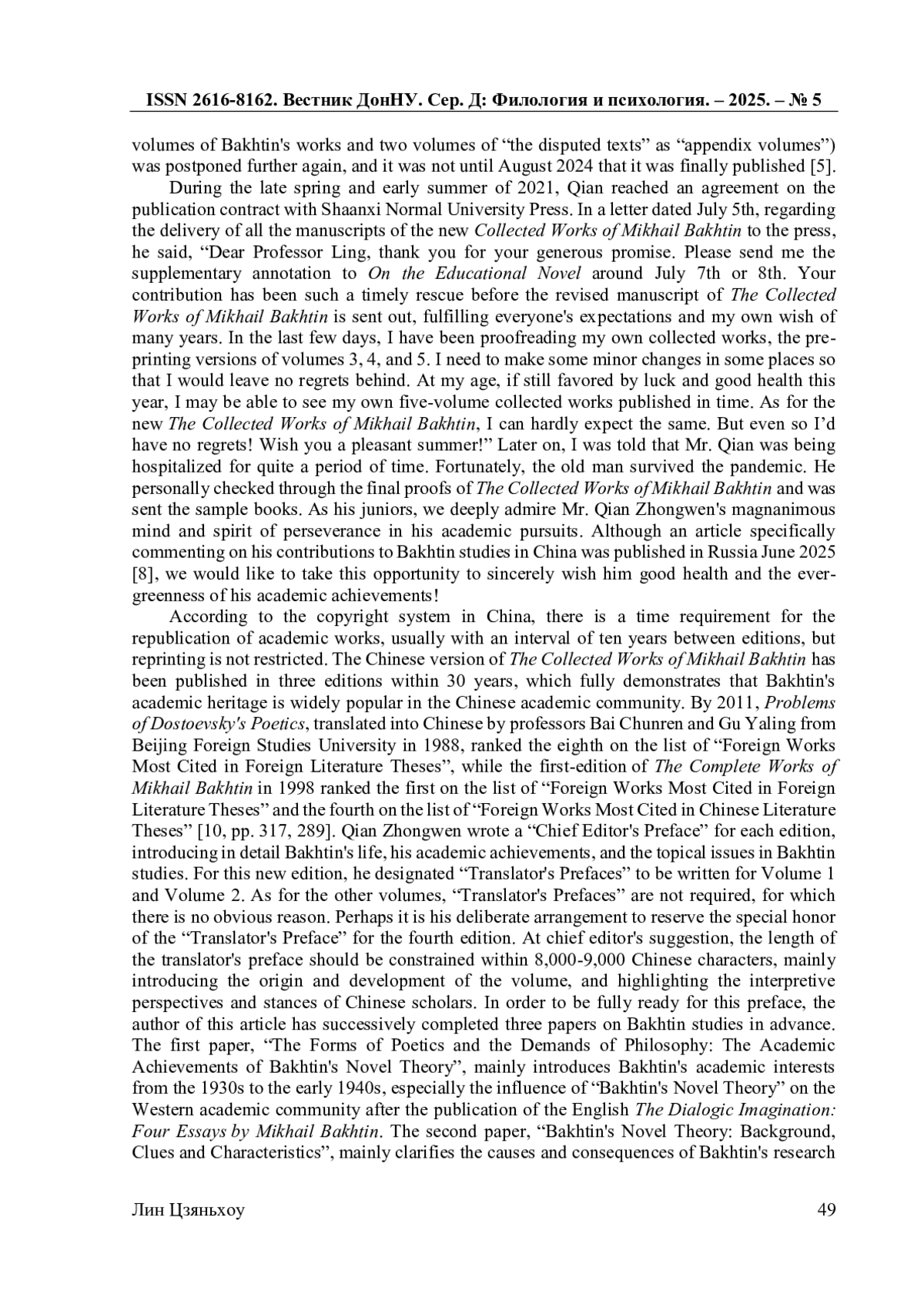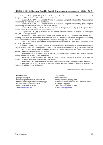 8. Ling J., and Jiang Y. (2025) Qian Zhongwen and Bakhtin Studies in China. Studia Litterarum, No.2, pp. 28-51 (in Russian). EDN: XVXKSB