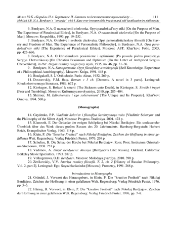 14. Klein P. Die.,kreative Freiheit“ nach Nikolaj Berdjajew. Zeichen der Hoffnung in einer gefallenen Welt. Regensburg: Verlag Friedrich Pustet, 1976. 269 s. (Studien zur Geschichte der katholischen Moraltheologie; Bd. 21).
