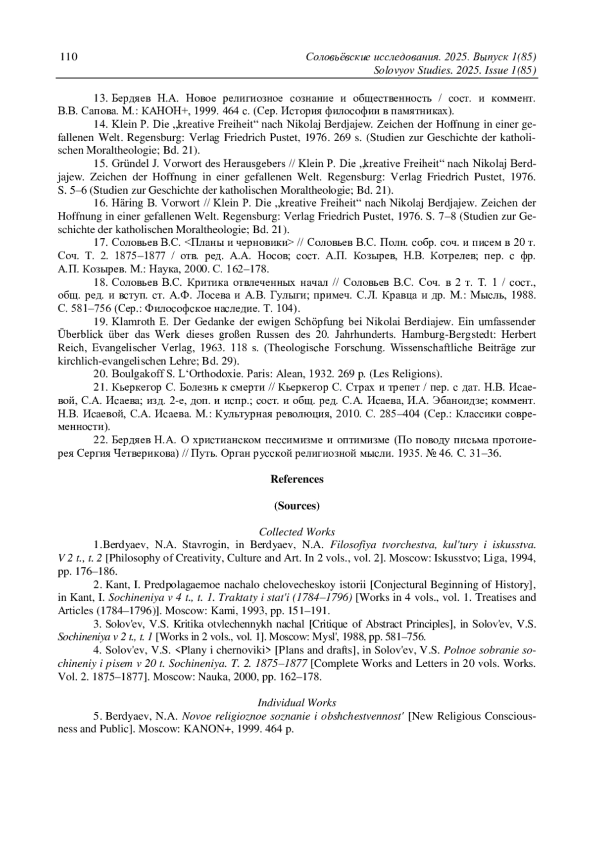 15. Gründel J. Vorwort des Herausgebers // Klein P. Die.,kreative Freiheit“ nach Nikolaj Berdjajew. Zeichen der Hoffnung in einer gefallenen Welt. Regensburg: Verlag Friedrich Pustet, 1976. S. 5-6 (Studien zur Geschichte der katholischen Moraltheologie; Bd. 21).