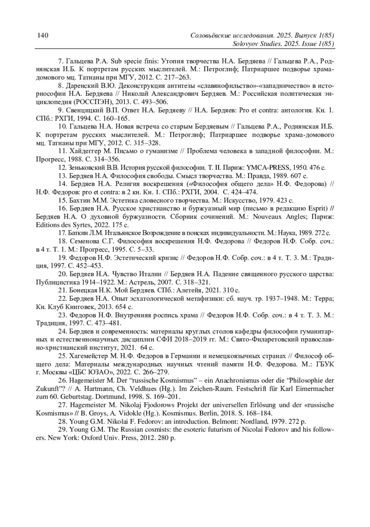 14. Бердяев Н.А. Религия воскрешения (“Философия общего дела” Н.Ф. Федорова) // Н.Ф. Федоров: pro et contra: в 2 кн. Кн. 1. СПб.: РХГИ, 2004. С. 424-474.