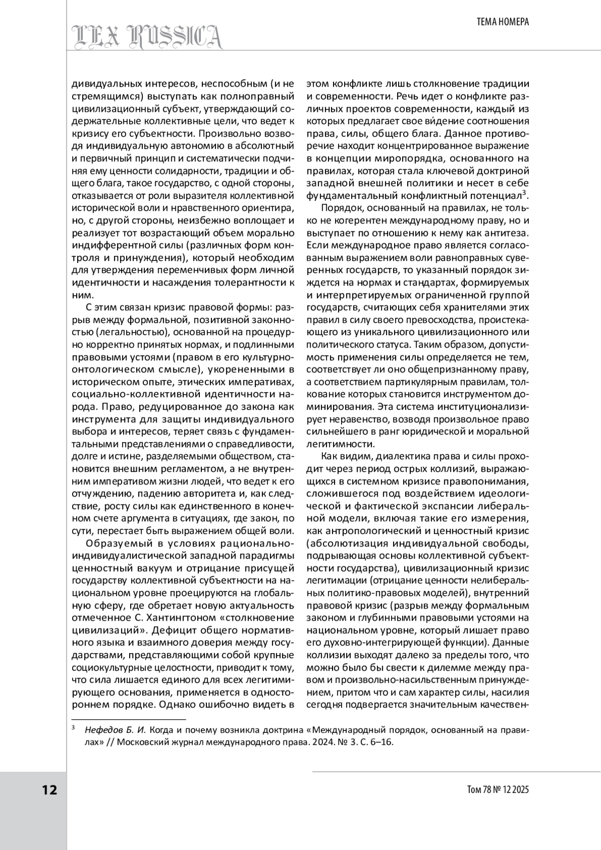 9. Нефедов Б. И. Когда и почему возникла доктрина «Международный порядок, основанный на правилах» // Московский журнал международного права. 2024. № 3. С. 6-16.