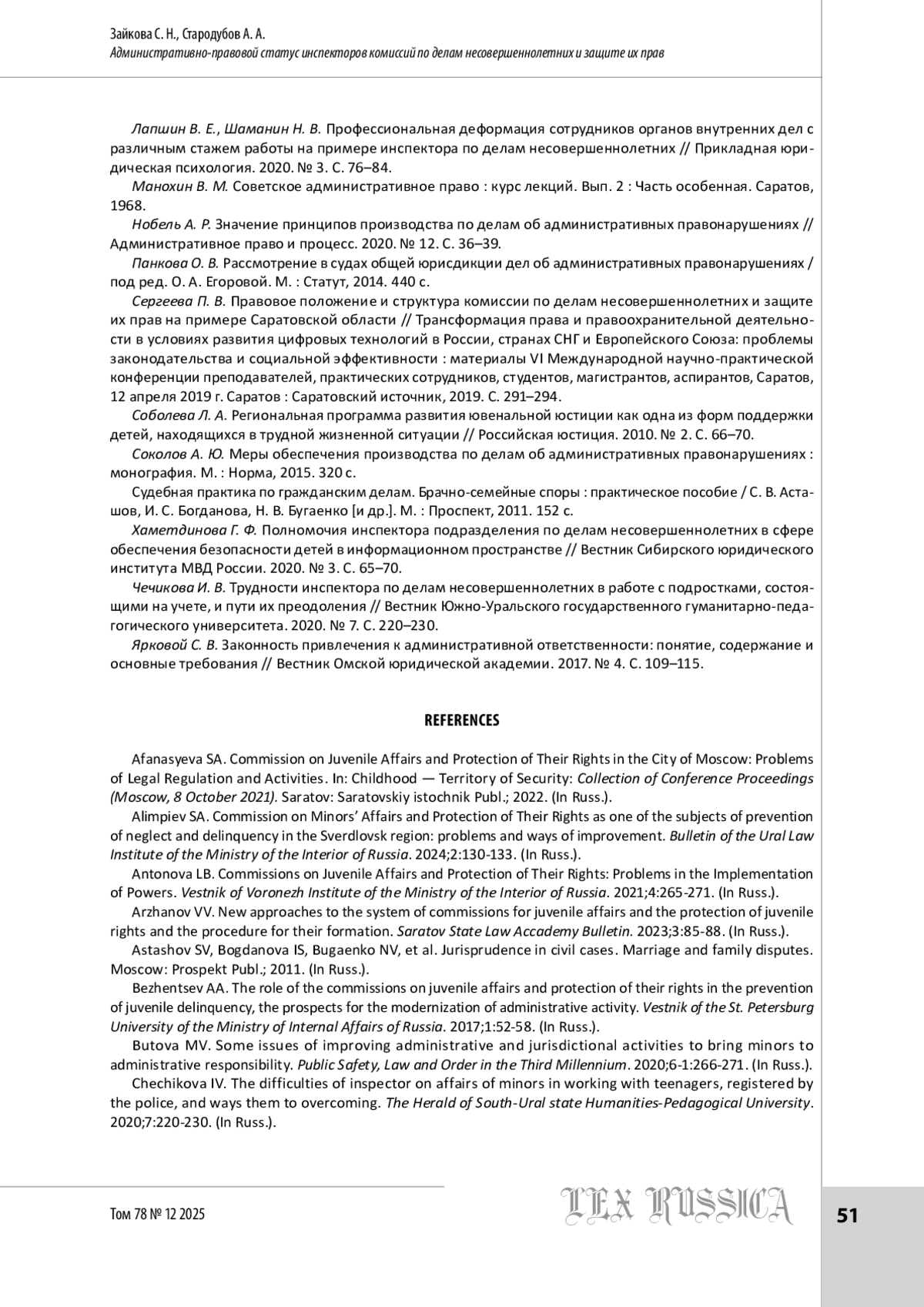 4. Афанасьева С. А. Комиссии по делам несовершеннолетних и защите их прав в городе Москве: проблемы правового регулирования и деятельности // Детство - территория безопасности : сборник материалов конференции, Москва, 8 октября 2021 г. Саратов : Саратовский источник, 2022. С. 188-192.