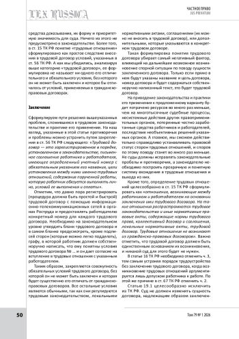 6. Оспичев И. М. Проблемы действия трудовых договоров и пути их решения // Гуманитарные, социальноэкономические и общественные науки. 2020. № 3. С. 132-136.