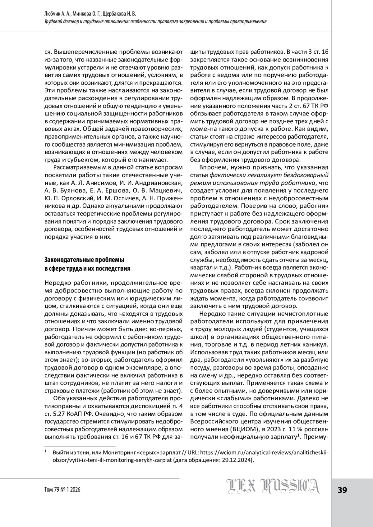 2. Анисимов А. Л. Основания возникновения трудовых отношений и их юридическое толкование // Ленинградский юридический журнал. 2010. № 4. С. 80-90.