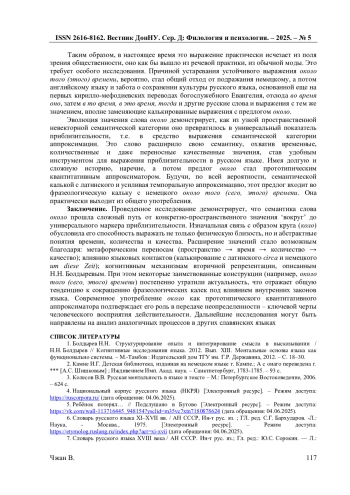 1. Болдырев Н.Н. Структурирование опыта и интегрирование смысла в высказывании / Н.Н. Болдырев // Когнитивные исследования языка. 2012. Вып. XIII. Ментальные основы языка как функционально системы. - М.-Тамбов: Издательский дом ТГУ им. Г.Р. Державина, 2012. - С. 18-30. EDN: PYUUMD