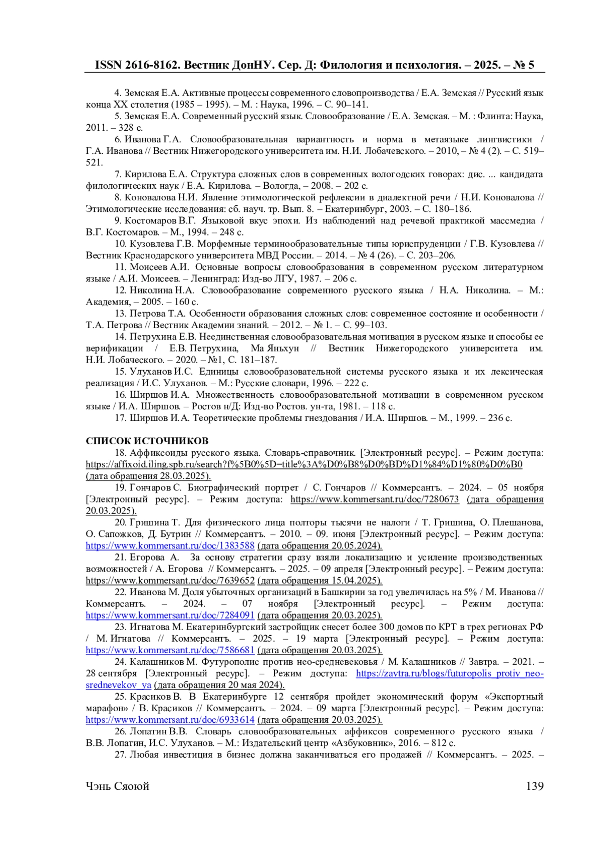 14. Петрухина Е.В. Неединственная словообразовательная мотивация в русском языке и способы ее верификации / Е.В. Петрухина, Ма Яньхун // Вестник Нижегородского университета им. Н.И. Лобаческого. - 2020. - №1, C. 181-187.