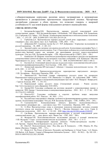 2. Горбунова Д.А. Прагматические маркеры русской устной речи: корреляция с психотипом говорящего: дисс. канд. филол. наук / Д.А. Горбунова. - СПб., 2021. - 138 с.