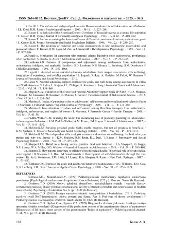 11. Barber B.K. Parental psychological control: Revisiting a neglected construct / B.K. Barber // Child Development. - 1996. - Vol. 67. - P. 3296-3319.
