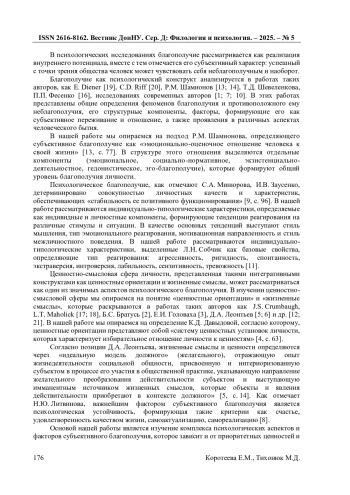 14. Шамионов Р.М. Методика диагностики субъективного благополучия личности / Р.М. Шамионов, Т.В. Бескова // Психологические исследования. - 2018. - № 11(60). - С. 8-20. DOI: 10.54359/ps.v11i60.277 EDN: YLUVCH
