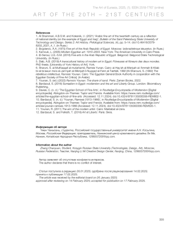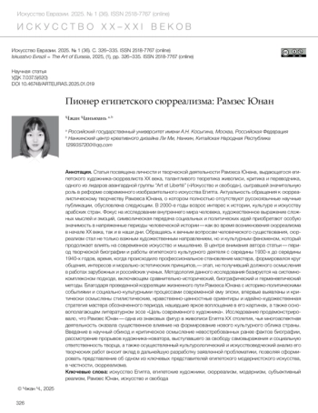 Чжан Ч. Пионер египетского сюрреализма: Рамзес Юнан // Искусство Евразии [Электронный журнал]. 2025. No 1 (36). С. 326–335. https://doi.org/10.46748/ARTEURAS.2025.01.019.