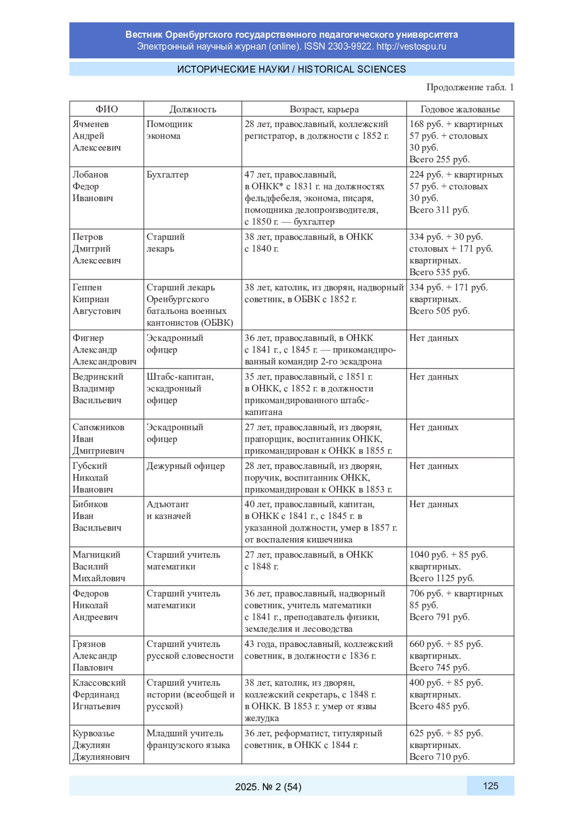 40. Формулярные списки служащих Оренбургского Неплюевского кадетского корпуса за первую половину 1850-х гг. // РГВИА. Ф. 1754. Оп. 1. Д. 92.