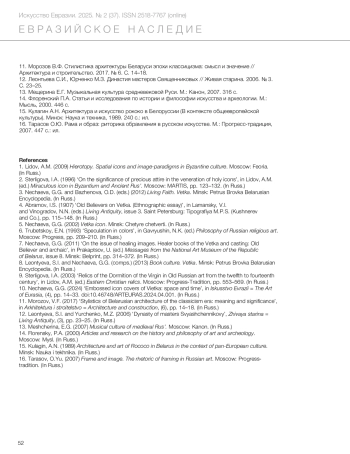 11. Morozov, V.F. (2017) ‘Stylistics of Belarusian architecture of the classicism era: meaning and significance’, in Arkhitektura i stroitelstvo = Architecture and construction, (6), pp. 14–18. (In Russ.)